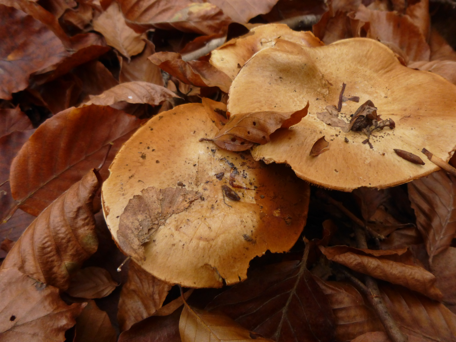 Beide Arten standen gesellig mit 8 bzw 5 Fruchtkörpern direkt neben- und zwischeneinander bei Buchen am Wegrand