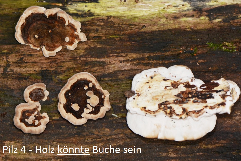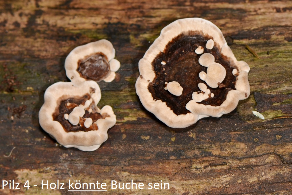 Pilz 4 sollten junge Schmetterlingstrameten (Trametes versicolor) sein.
