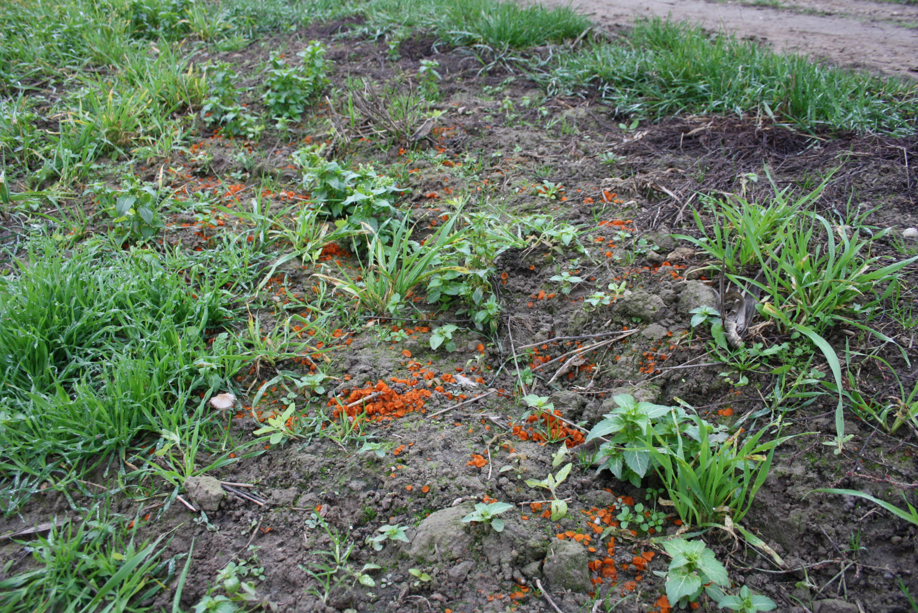 Bei den orangenen Fruchtkörper dachte ich zuerst an den Orangebecherling. Mittlerweile glaube ich eher, dass es sich um einen Borstling handelte. Die Fruchtkörper wuchsen auf der nackten sandigen Erde, besaßen eine leuchtend orange Färbung und hatten einen Durchmesser von bis zu 1,5 cm. Die Fruchtkörper waren alle ziemlich flach und teilweise am Rand dunkel gefärbt, was für einen Borstling sprechen würde, oder?![]()