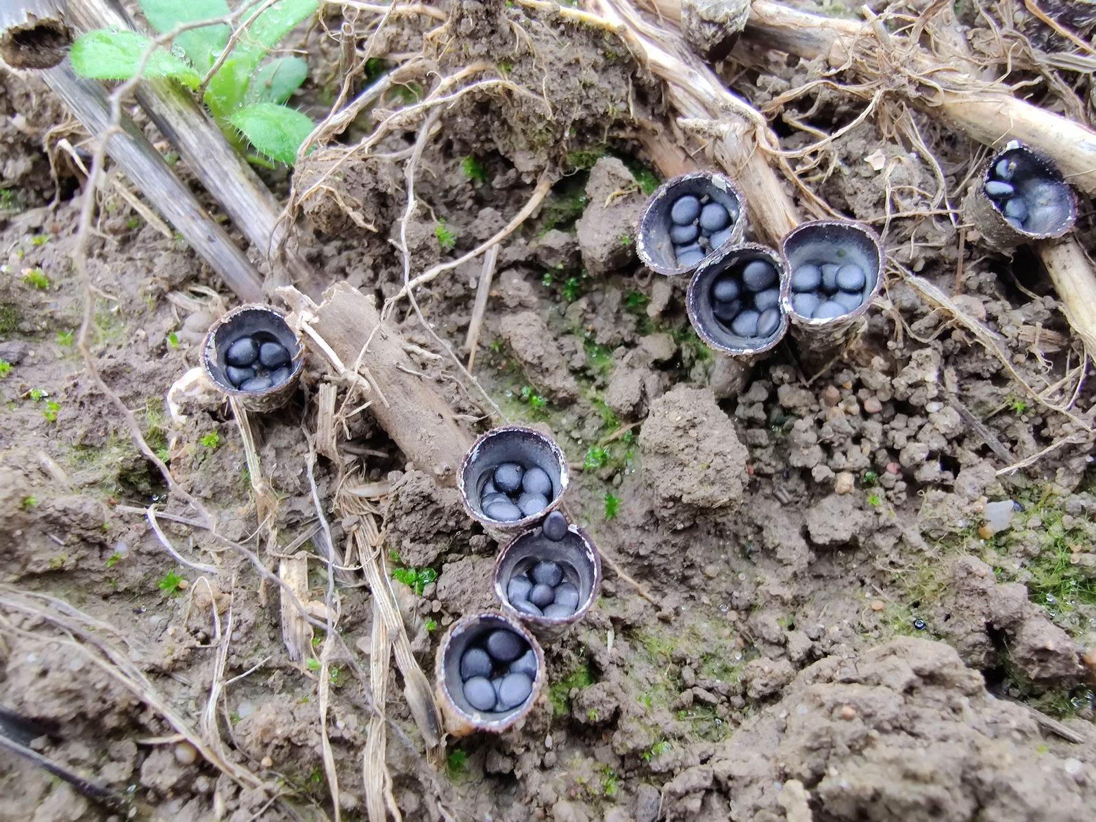 folgende zwei Arten habe ich auf einer Ackerfläche entdeckt. Die Becherlinge/Borstlinge wuchsen am Wegesrand über eine Länge von ca. zwei Metern massenhaft.