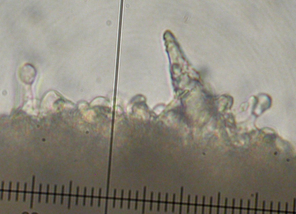 • Die Hüte waren ganzrandig, von oben sahen die Grüppchen tatsächlich nach Büschelraslingen aus. Übrigens habe ich beim Schnuppern keinen Mehlgeruch wahrgenommen, und den erkenne ich normalerweise recht gut.