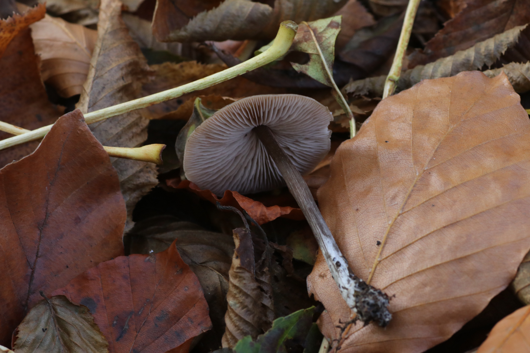 Gefunden habe ich ihn am Rande eines Bruchwaldgebietes, wo neben einem Sportplatz ein kleines Waldstückchen liegt. Die Pilze wuchsen unter Buchen im Laub, weitere Bäume, die in der Nähe standen, waren Eschen und eine Kirsche.