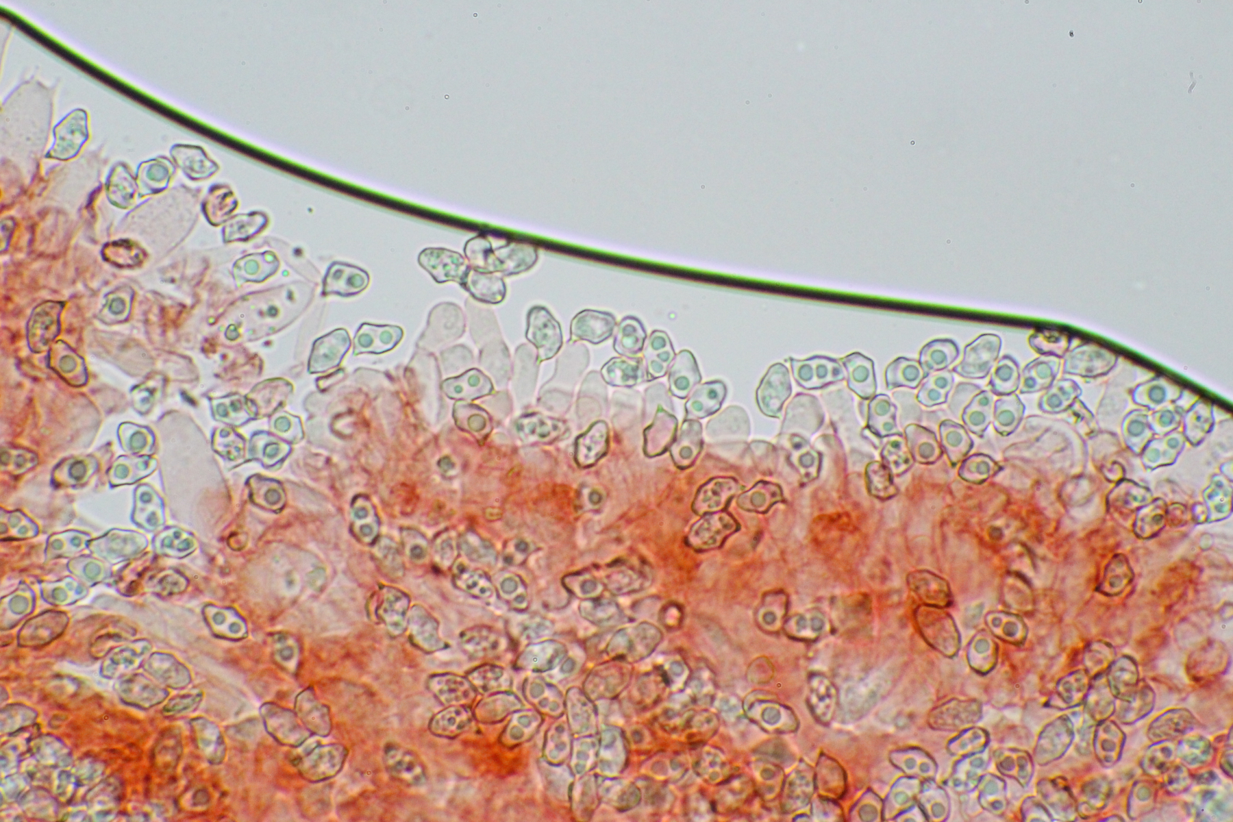 Cheilozystiden waren vorhanden. Die HDS war inkrustiert und auch an einigen Zellen intrazellulär inkrustiert.