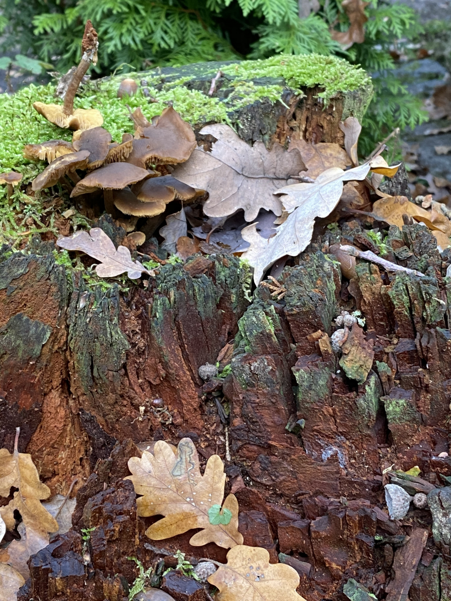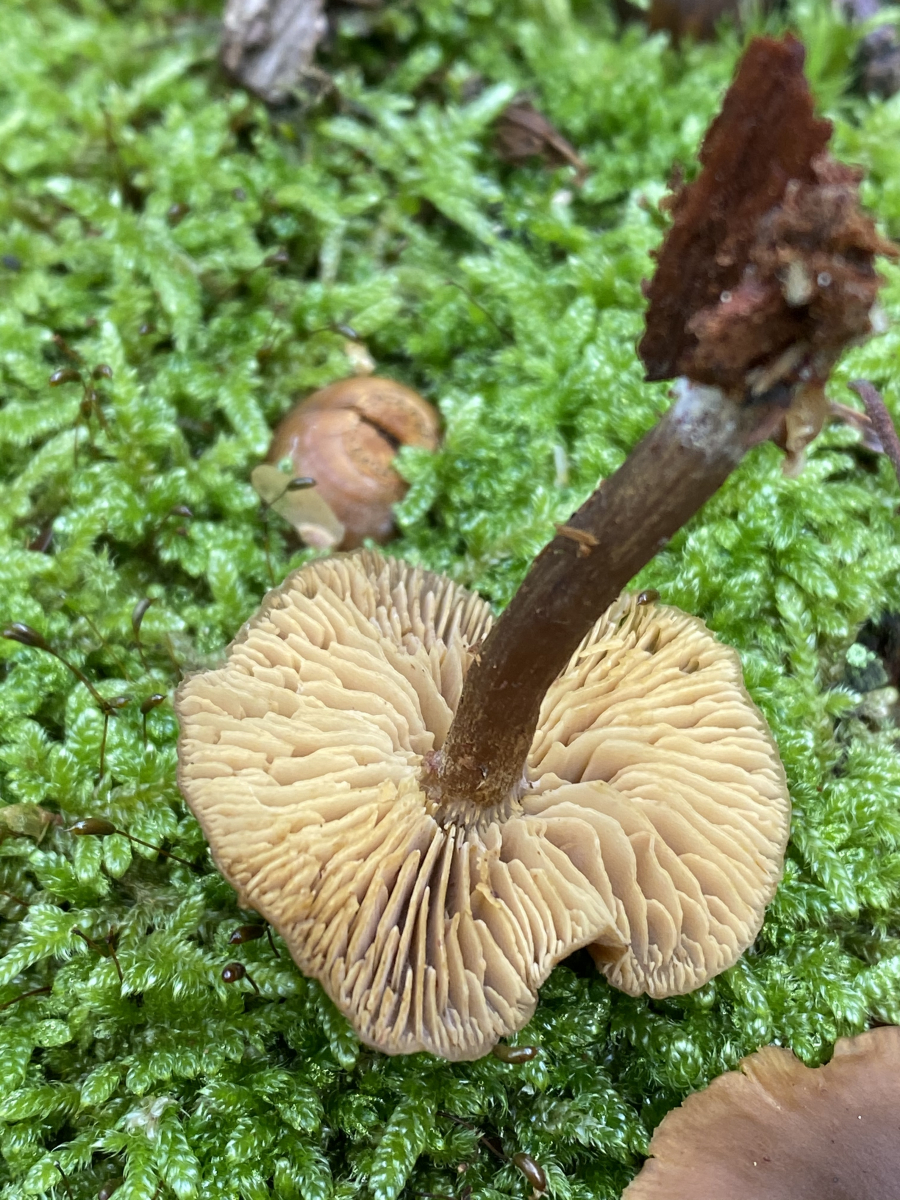 Beim ersten Pilz führt bei im Abwurf weißem Sporenpulver (würde ich hier erwarten) die Spur zur Gattug Callistosporium. Wobei Callistosporium luteoolivaceum und Callistosporium pinicola wohl auch wieder nur mikroskopisch sicher zu unterscheiden sind. Wäre der Sporenabwurf bräunlich, dann Gymnopilus picreus, würde ich hier aber eher nicht erwarten.
