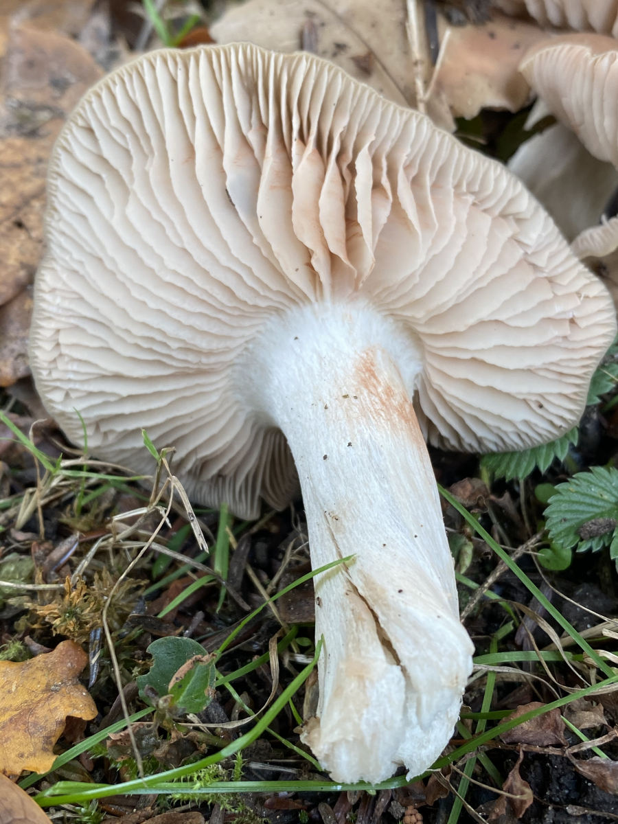 Entoloma lividoalbum würde ausgeprägt mehlartig riechen. Wenn kein solcher Geruch feststellbar, dann wär's ein anderer Rötling und die Chance auf eine makroskopische Bestimmung nur noch minimal. Die Huthaut sollte deutlich hygrophan sein, aber nicht so streifig - hygrophan wie beim ebenfalls mehlartig riechenden Entoloma prunuloides, den man bei solchen Wiesenfunden auch immer im Auge haben muss.