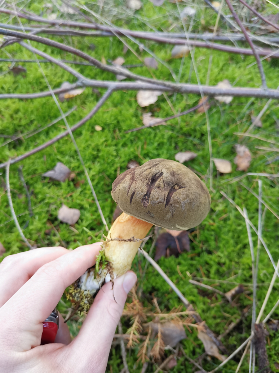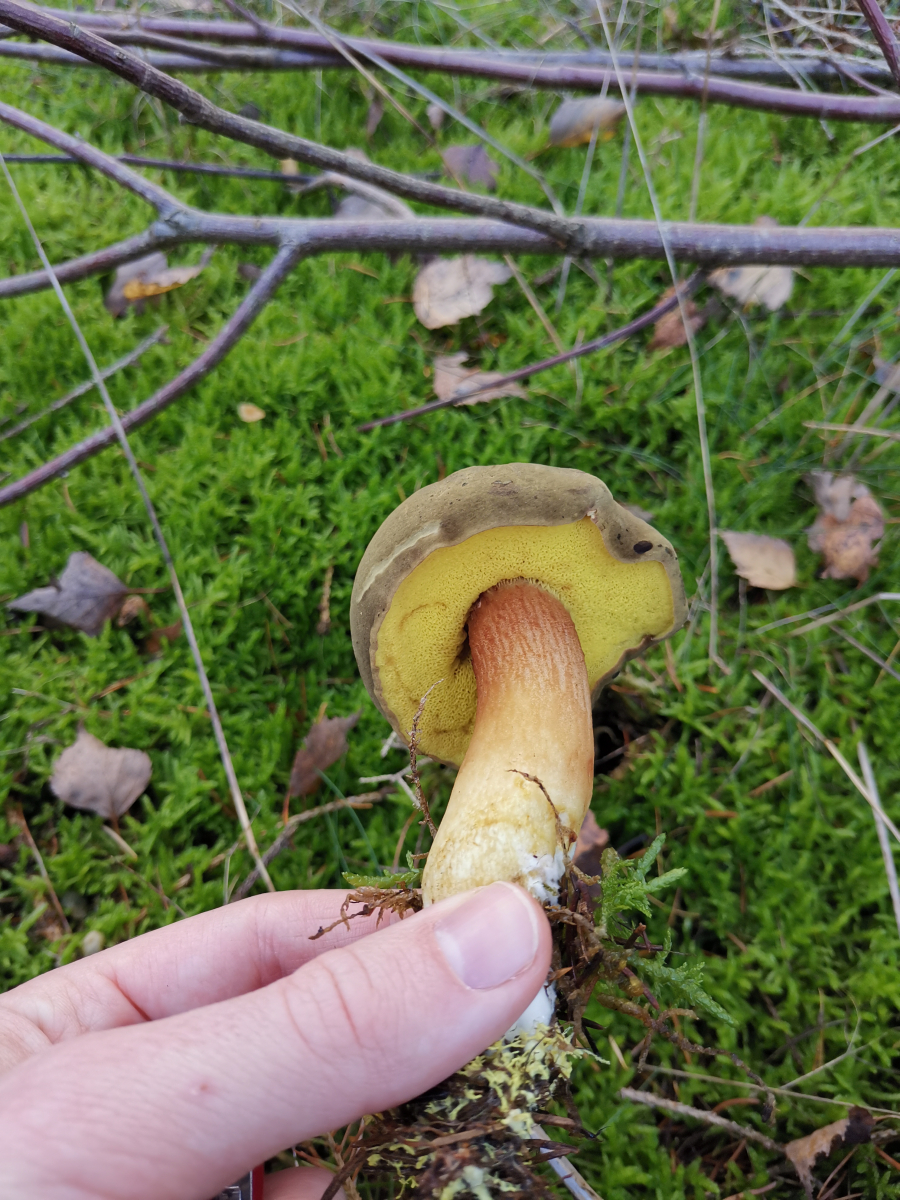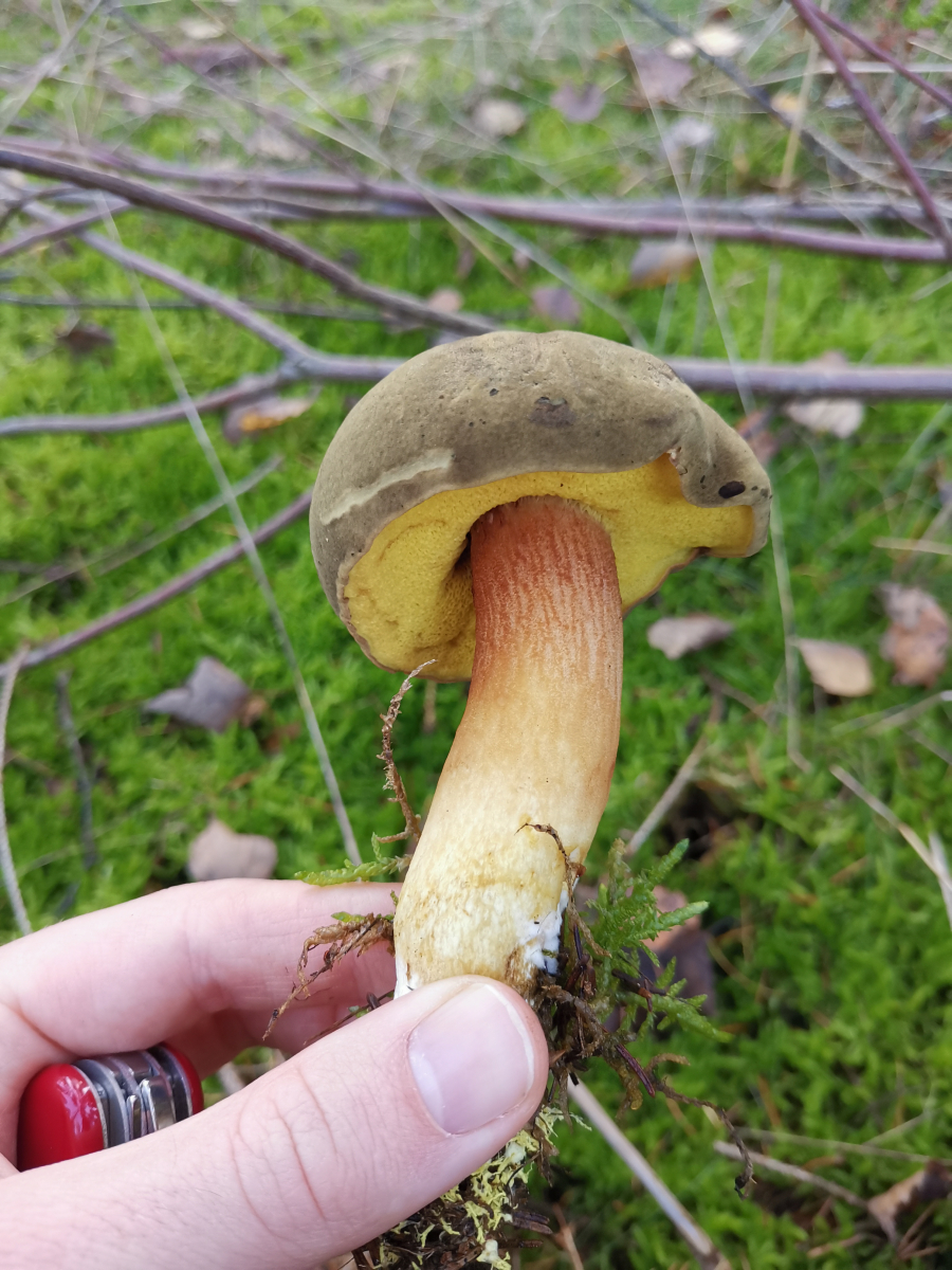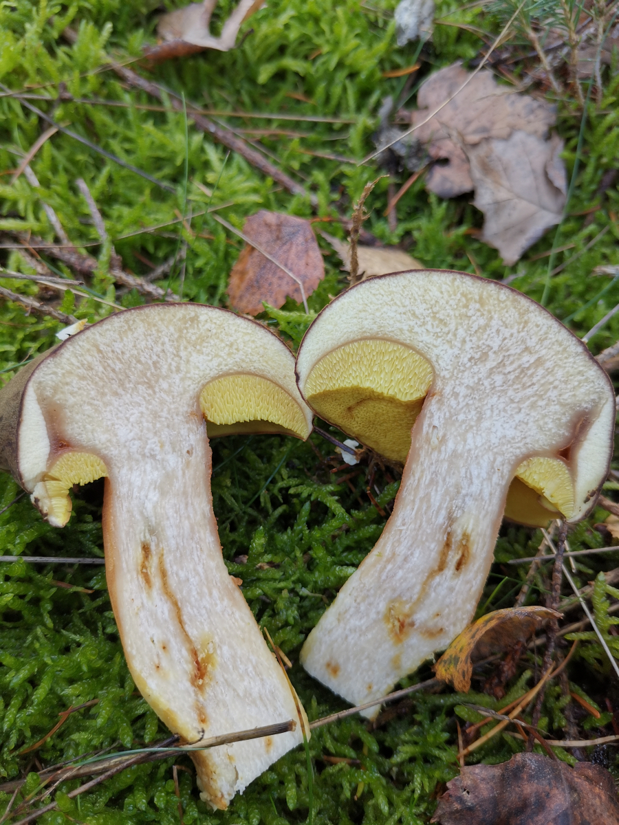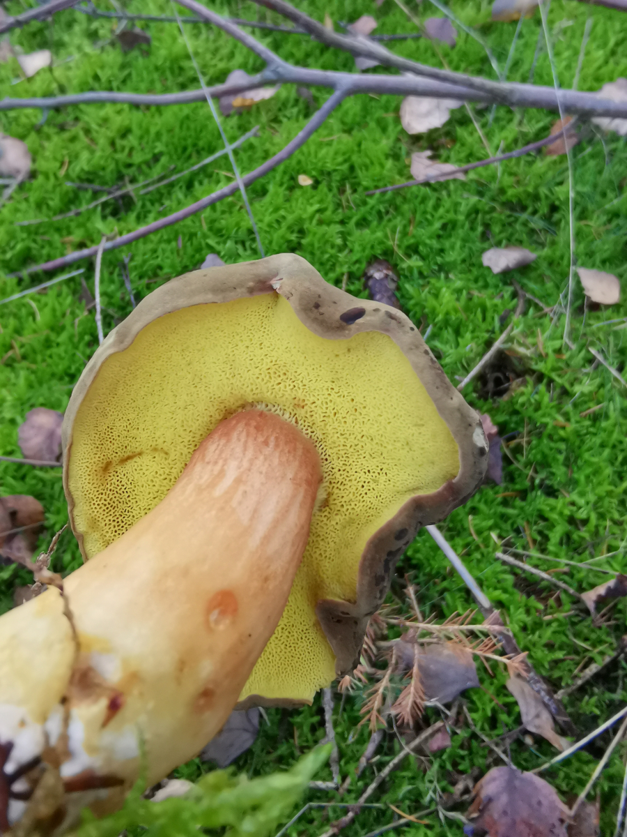 Auf der Suche nach Maronenröhrlingen und in entsprechender Umgebung und Nachbarschaft fiel mir folgender Pilz auf. Die Röhren blauten nicht auf Druck, der Hut war samtig und die Röhren leuchtend gelb. Also kein Maronenröhrling. Mein Pilzbuch sagt Ziegenlippe oder Brauner Filzröhrling. Nun hoffe ich auf eine Antwort.
