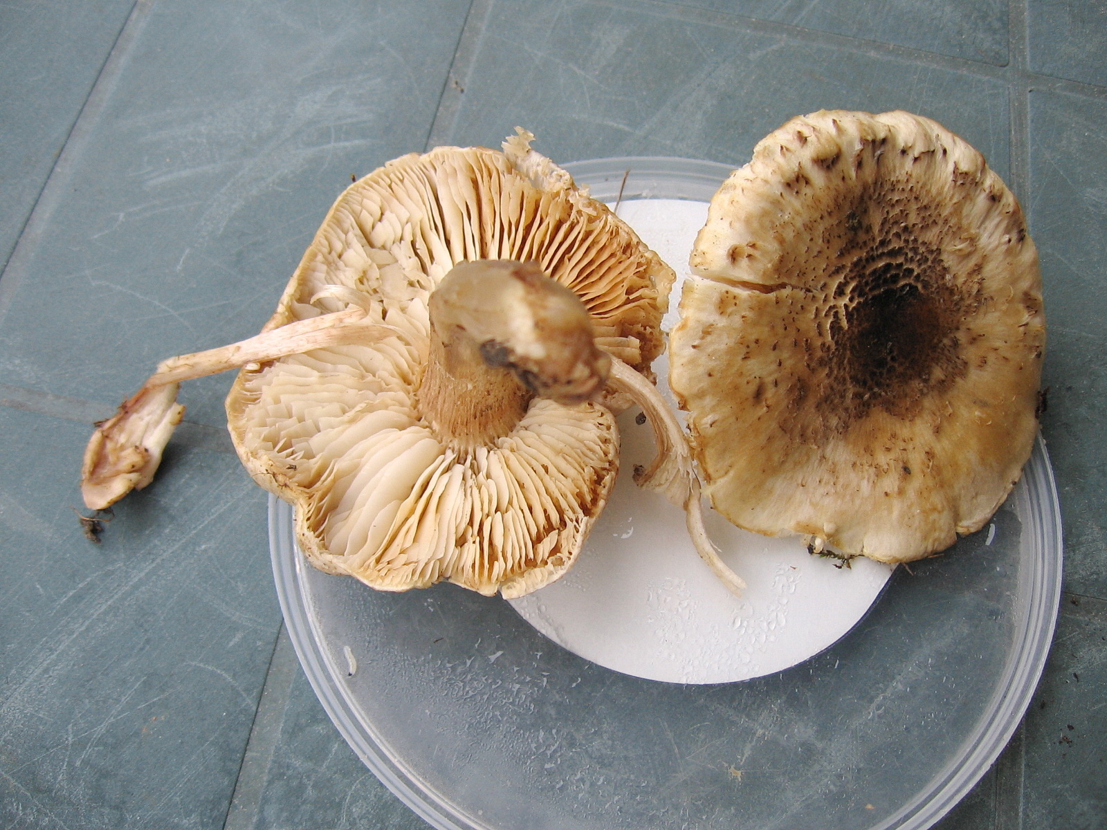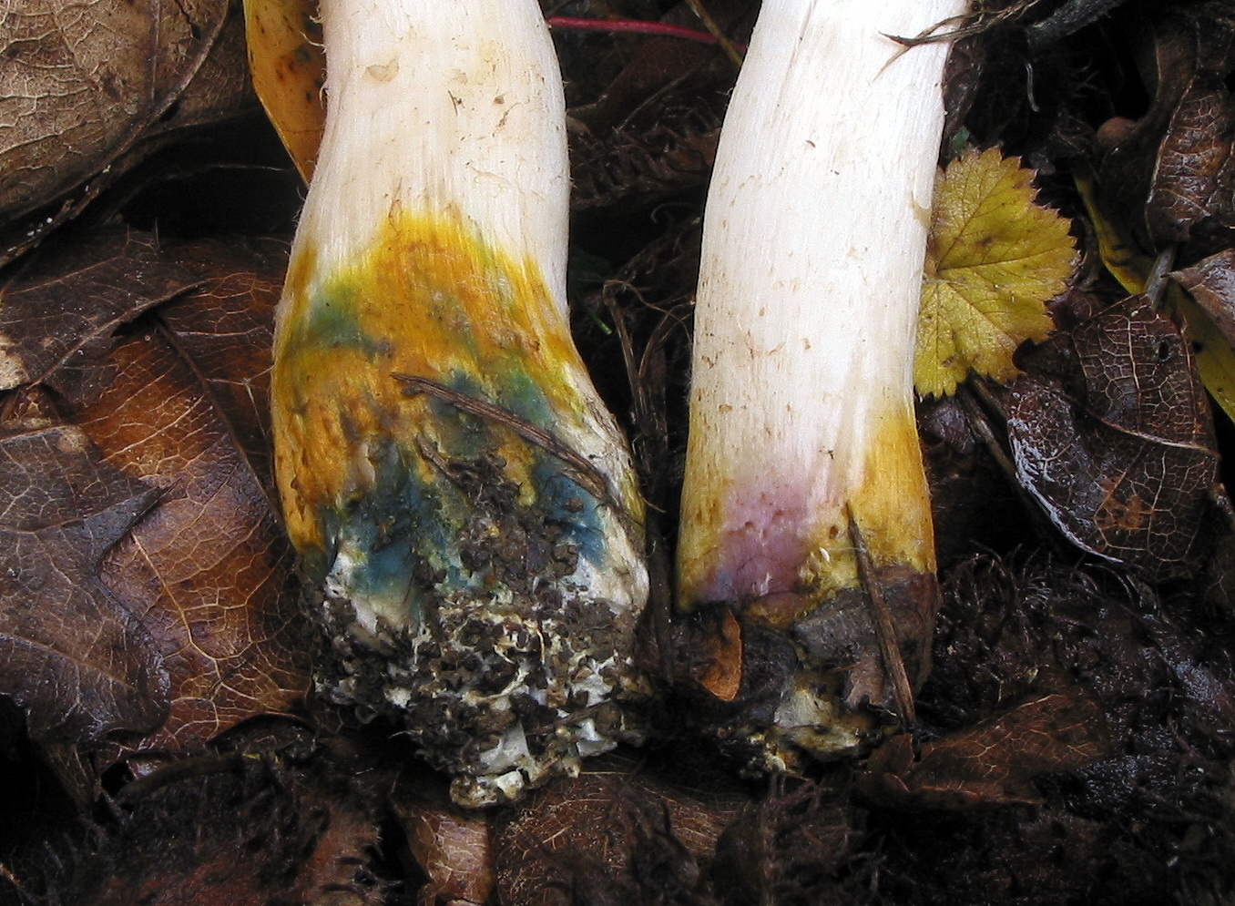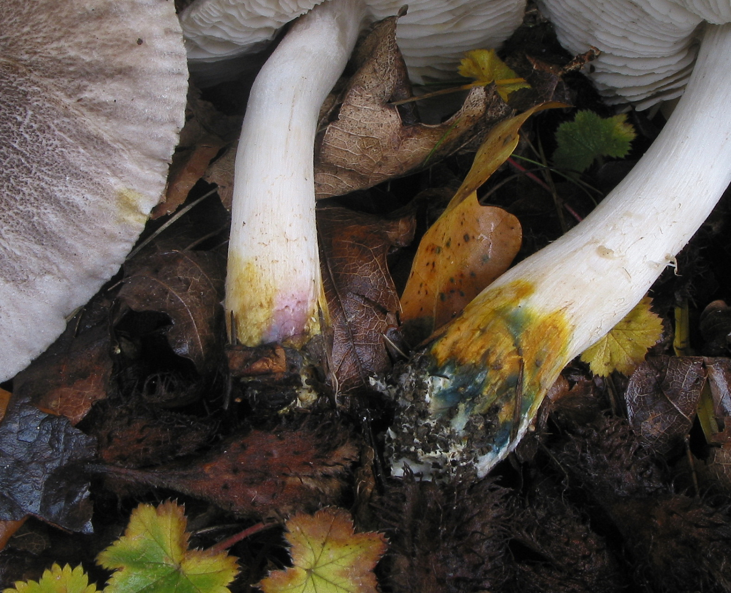 kein Gilben oder Röten der Lamellen; kein farbiges Basismycel,