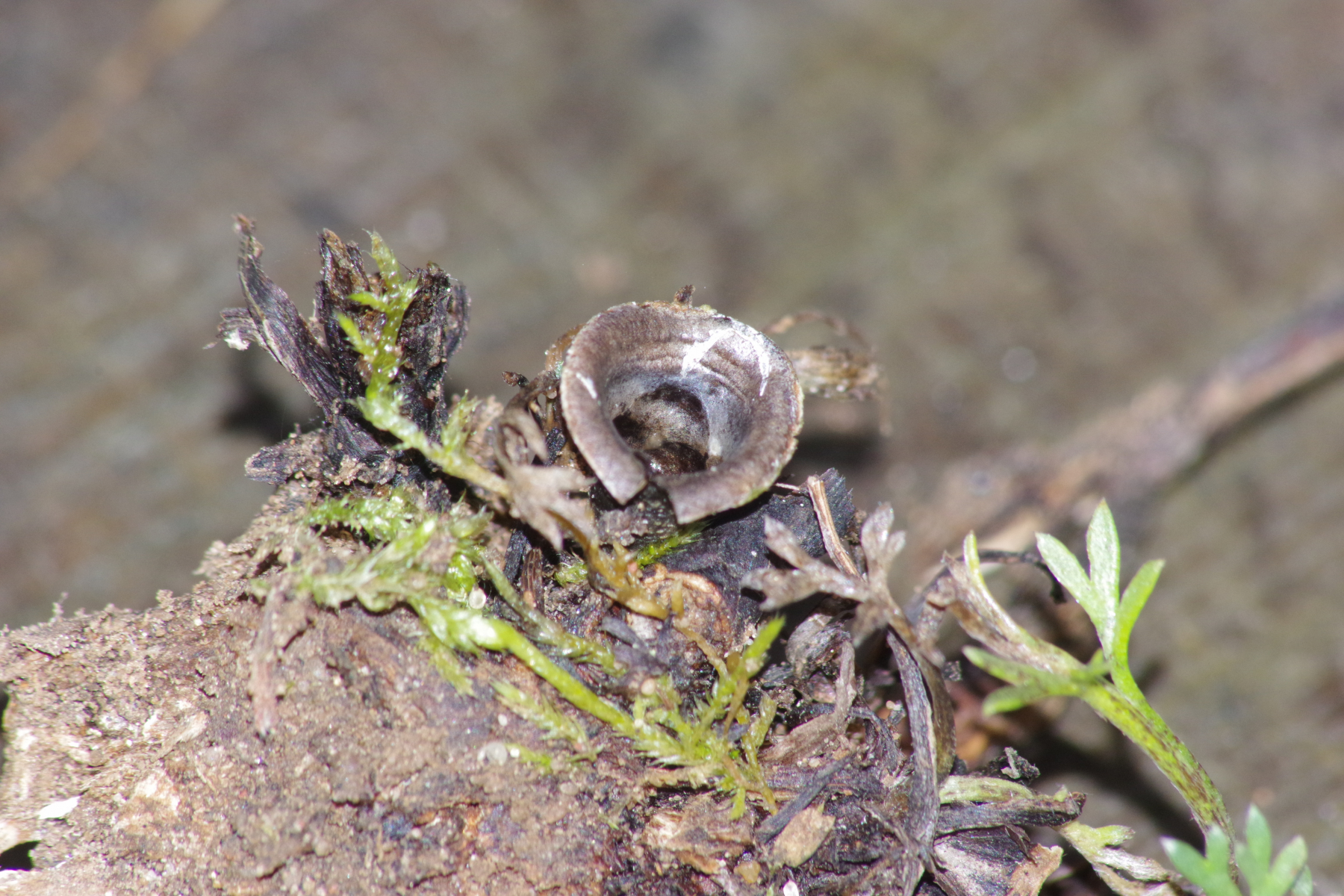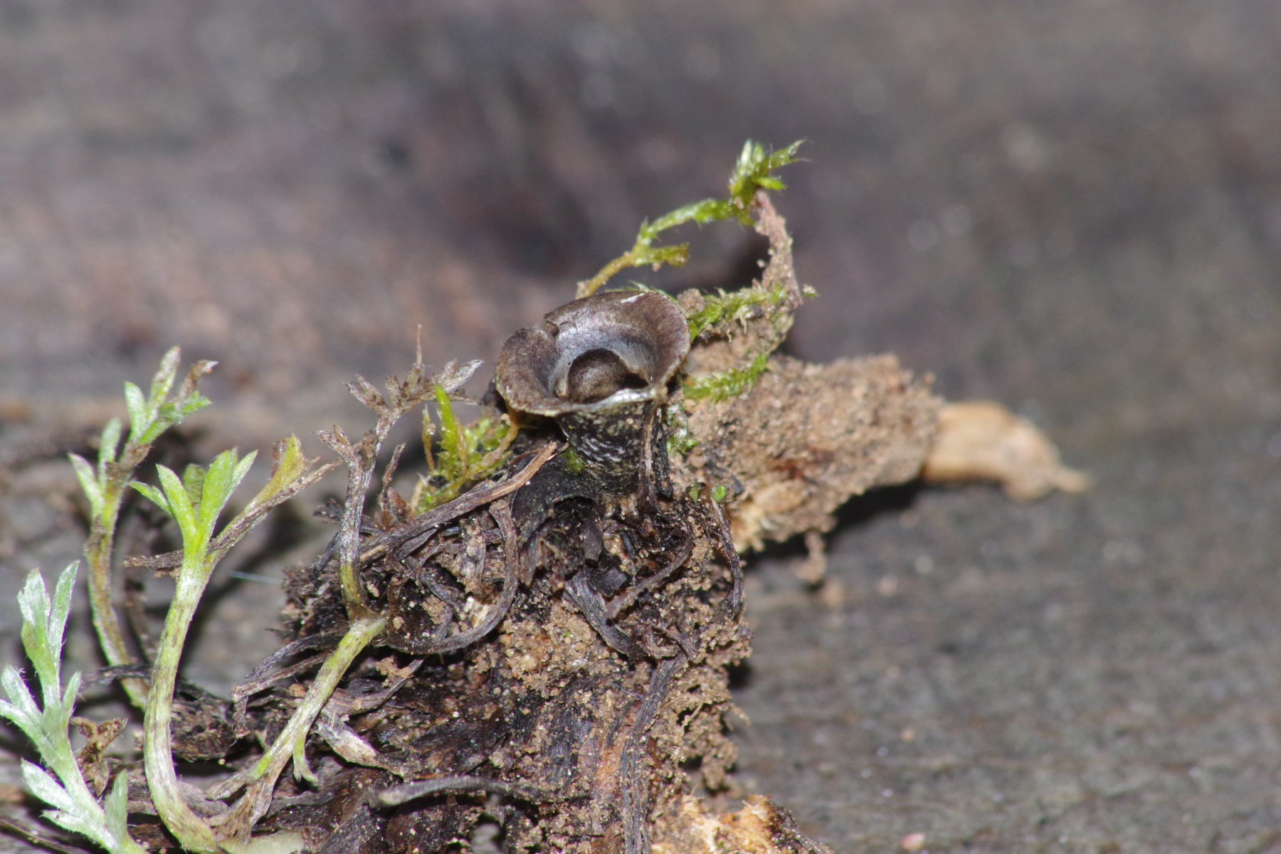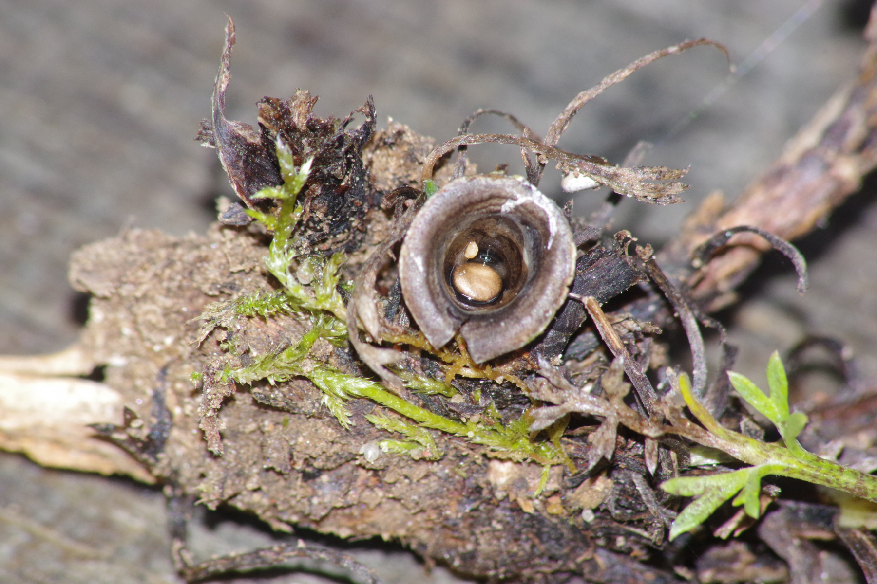 2. Dann wäre da noch ein Teuerling, leider ein Einzelstück vom Magerrasen, der allem Anschein nach auf dem Wurzelstock von Feld-Beifuß haust. Bis vor Kurzem dachte ich ja, dass es da nur zwei Arten gibt, Cyathus striatus und Crucibulum laeve - die zu kennen ich meine, aber Pilzforum lesen bildet. Dieser hier scheint mir Cyathus olla zu sein.