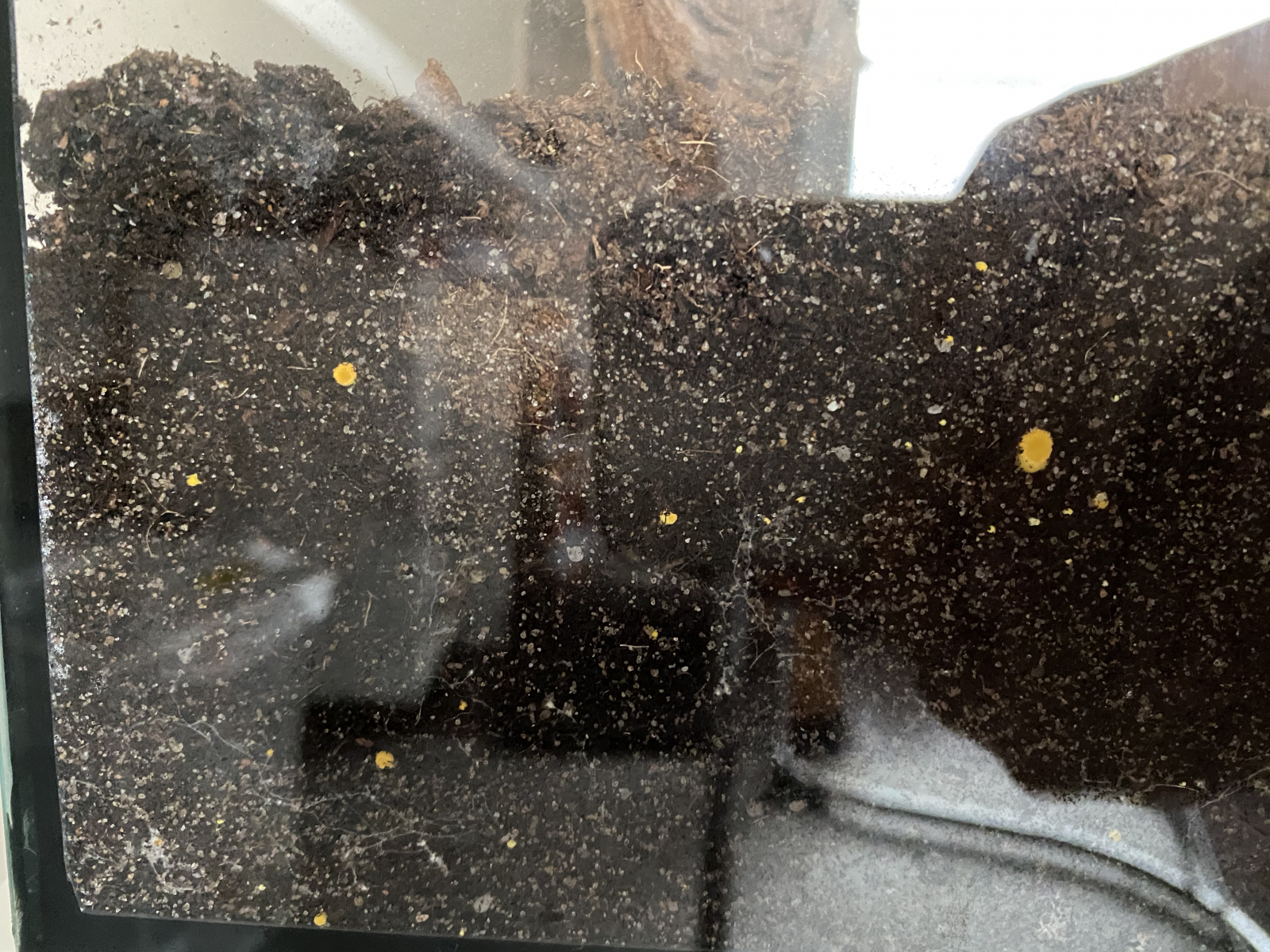 ich kann seit einigen Tagen/ Wochen gelb/orangene Punkte in der Erde meines Terrariums wahrnehmen, welche sich zu Pilzen entwickeln.