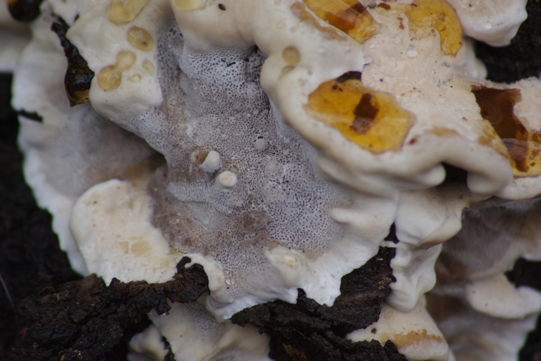 3 ist Bjerkandera fumosa (wenn auch etwas blass geraten), ob der alte Fruchtkörper dazu gehört, oder tatsächlich tyromyces fissilis sein kann, ist nicht erkennbar.