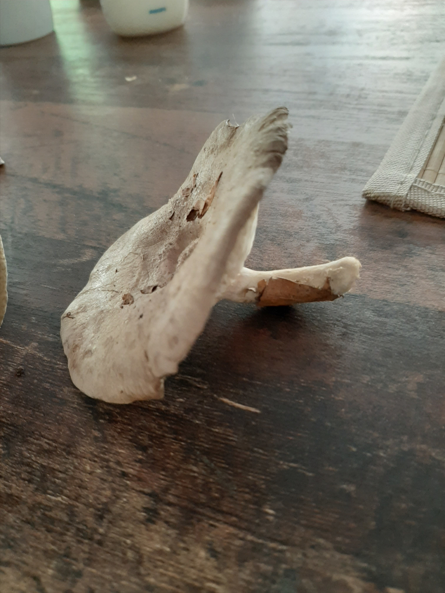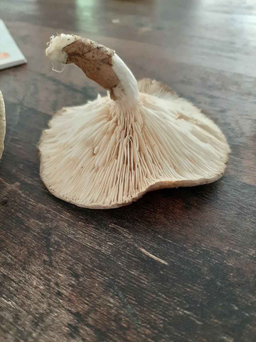 ...ich glaub er wollte wissen ob er sich durchbrechen lässt wie ein Stück Apfel oder Karotte ohne dabei längs aufzufasern. Das würde dann seine Vermutung bestätigen weil das milchlinge und täublinge von anderen Gattungen unterscheidet. Aber sieht schonmal so aus als wäre das der Fall🤔