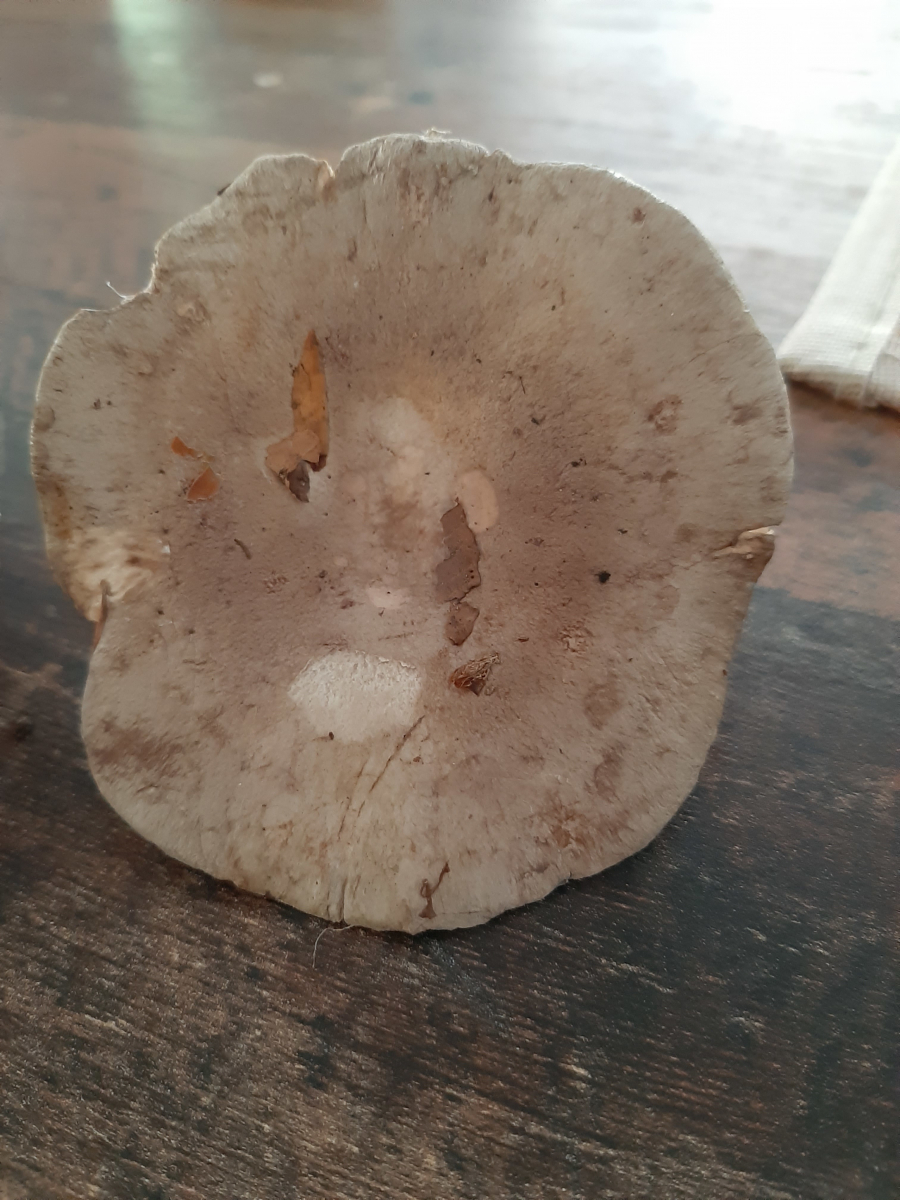 Insofern stimmt die Richtung, und mit der Hutoberfläche ist es dann ein Milchling und kein Täubling (auch wenn er nicht mehr milchen sollte).