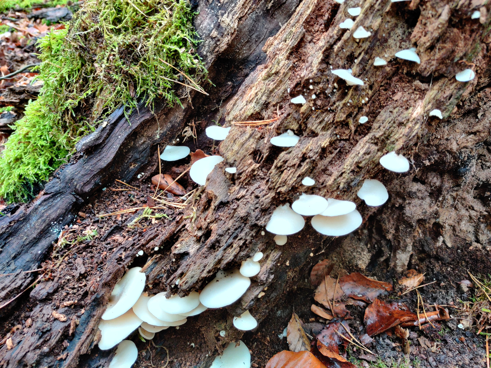 Vielleicht kann mir jemand weitere Arten nennen, die infrage kommen würden. Die Fruchtkörper waren reinweiß. Im betroffenen Wald stehen Hauptsächlich Rotbuchen und Waldkiefern. Ich kann jedoch leider auch ein anderes Substrat nicht ausschließen.