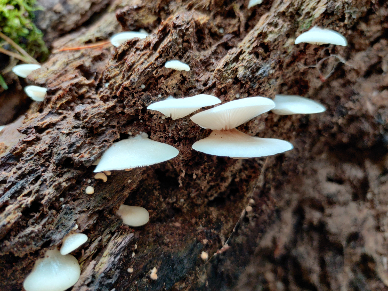 Vielleicht kann mir jemand weitere Arten nennen, die infrage kommen würden. Die Fruchtkörper waren reinweiß. Im betroffenen Wald stehen Hauptsächlich Rotbuchen und Waldkiefern. Ich kann jedoch leider auch ein anderes Substrat nicht ausschließen.