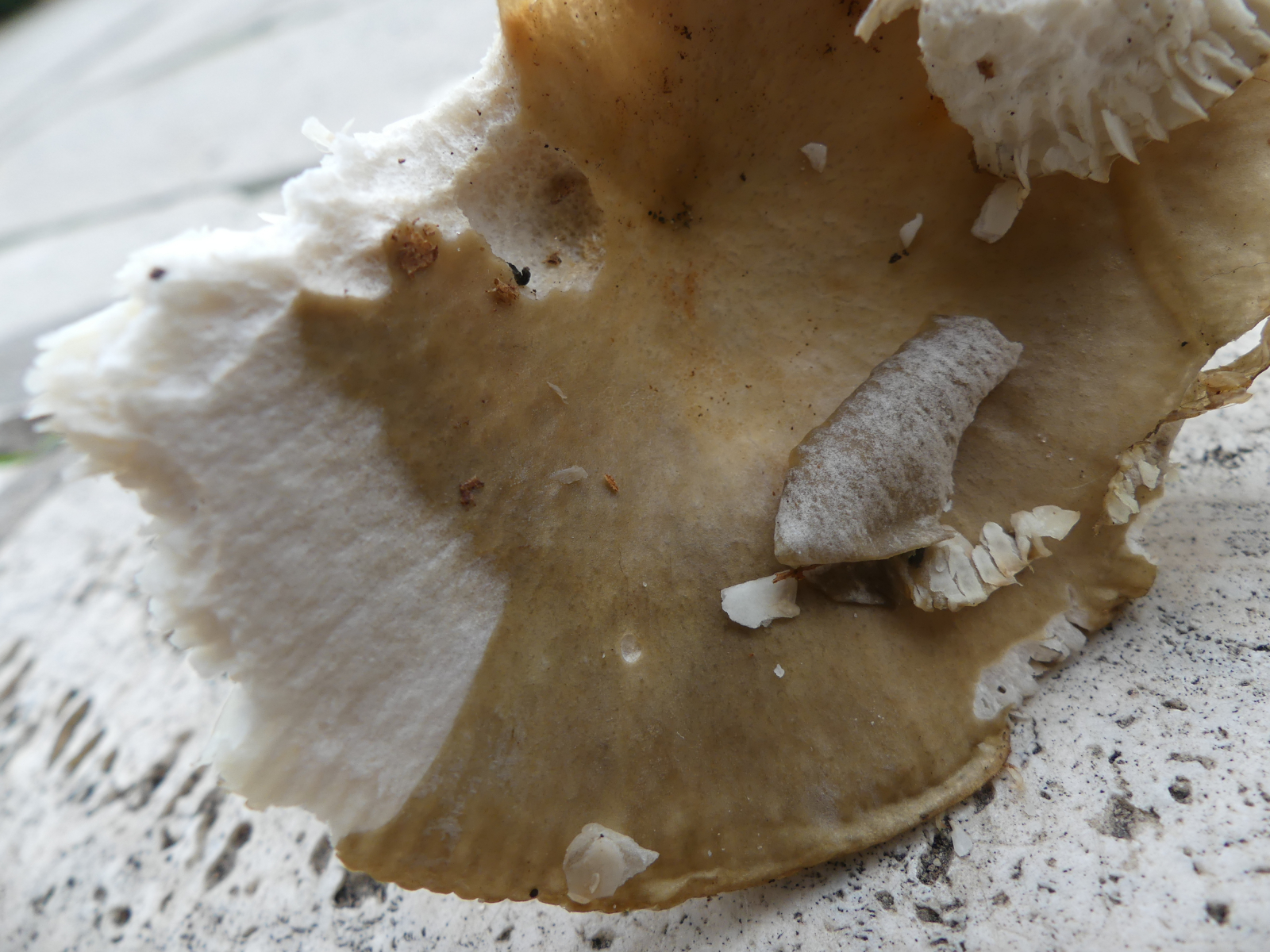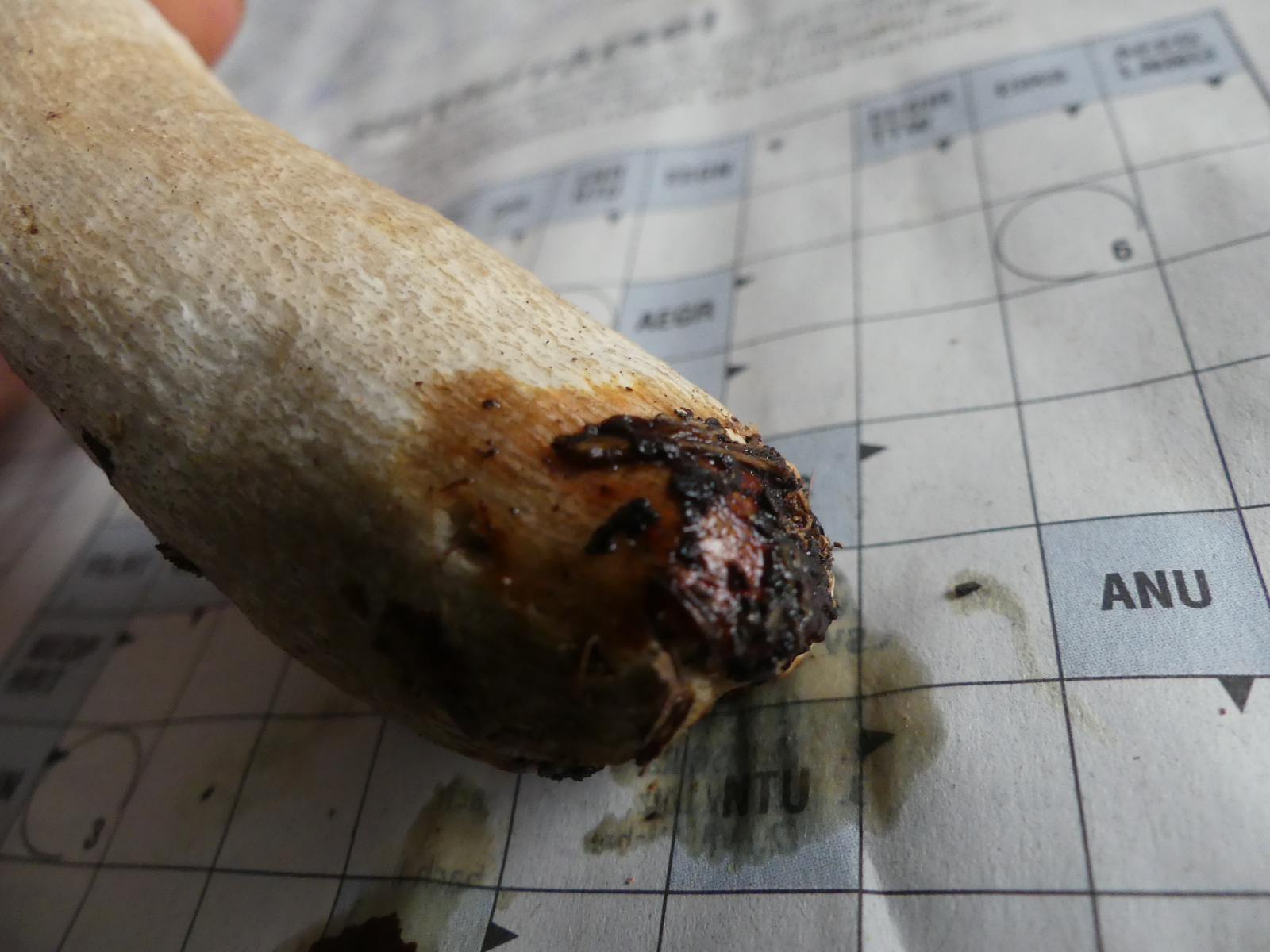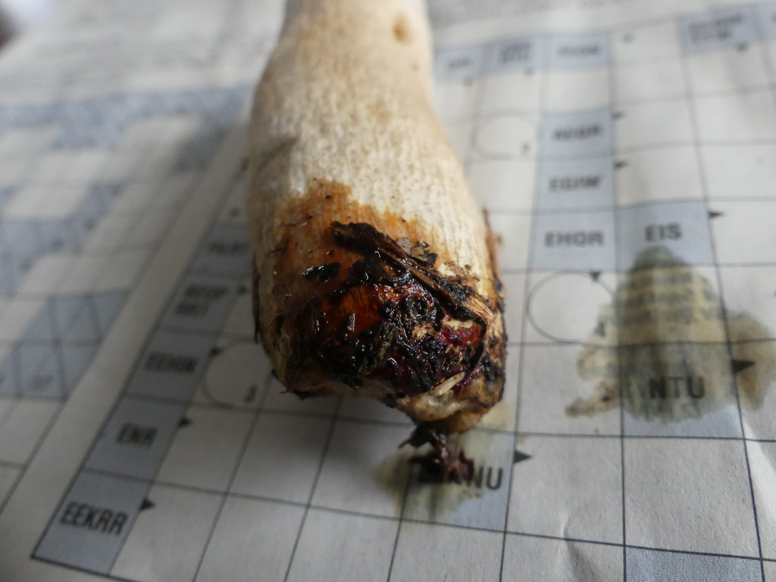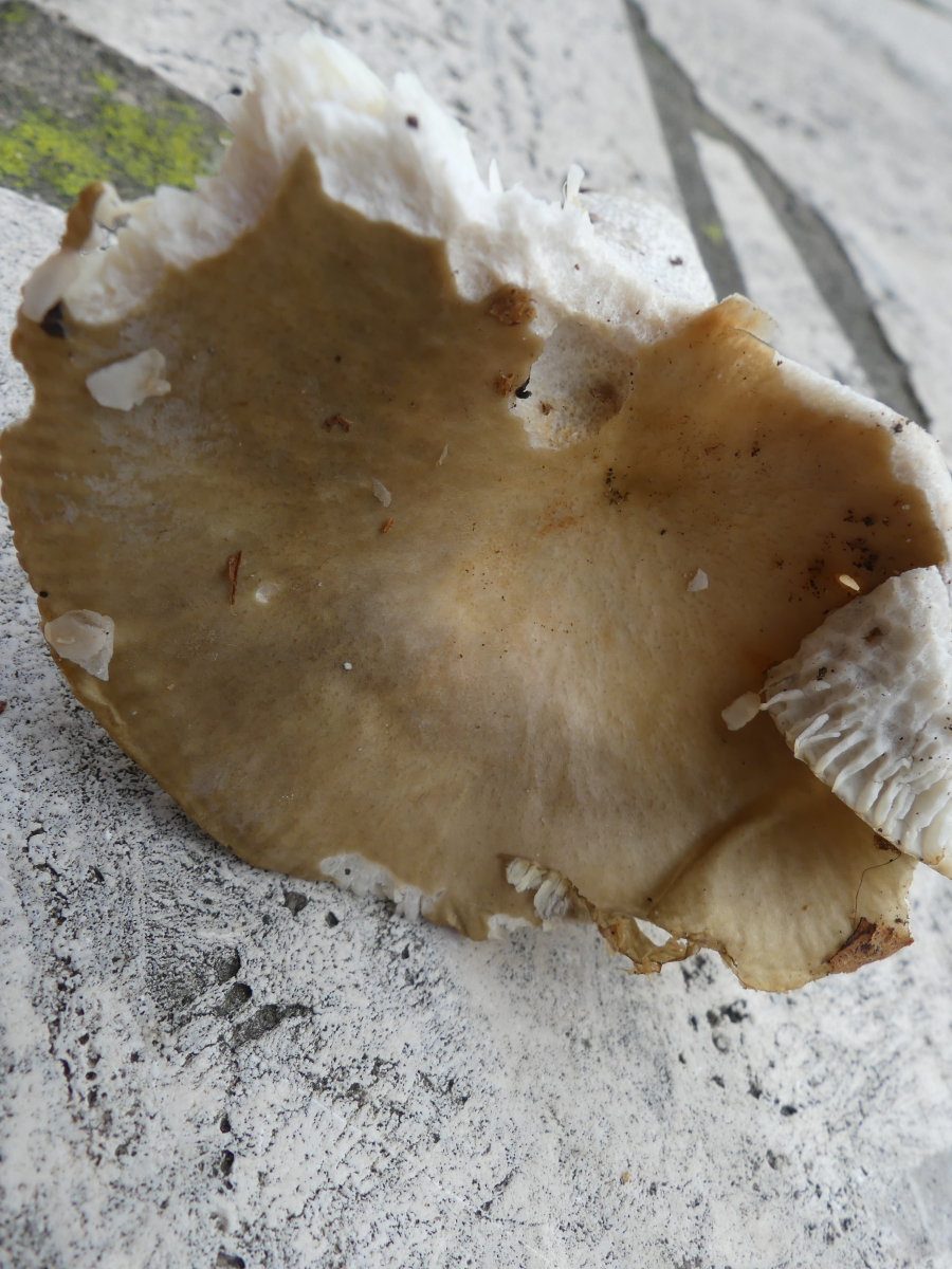 Gestern habe ich dieses Einzelexemplar im Kiefern-Lärchen-Buchenmischwald auf eher saurem Buntsandstein gefunden. Weinbauklima, 360 Meter über NN. Alleine der rauschuppig-längskörnige Stiel hat meine Neugier an diesem lädierten Täubling geweckt. Geschmack mild, erst nach mehreren Sekunden war ganz schwach eine ansatzweise Schärfe festzustellen. Huthaut zu ca. ein Drittel abziehbar. Sporenabwurf ist in Bearbeitung. Gibt es irgendeine Nachweisreaktion (Ammoniak, FeSO4 etc.), womit ich das Feld der Kandidaten eingrenzen kann?