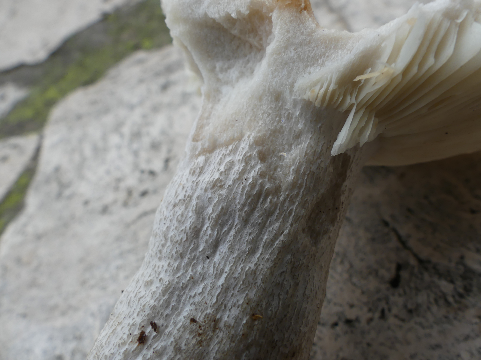 Gestern habe ich dieses Einzelexemplar im Kiefern-Lärchen-Buchenmischwald auf eher saurem Buntsandstein gefunden. Weinbauklima, 360 Meter über NN. Alleine der rauschuppig-längskörnige Stiel hat meine Neugier an diesem lädierten Täubling geweckt. Geschmack mild, erst nach mehreren Sekunden war ganz schwach eine ansatzweise Schärfe festzustellen. Huthaut zu ca. ein Drittel abziehbar. Sporenabwurf ist in Bearbeitung. Gibt es irgendeine Nachweisreaktion (Ammoniak, FeSO4 etc.), womit ich das Feld der Kandidaten eingrenzen kann?