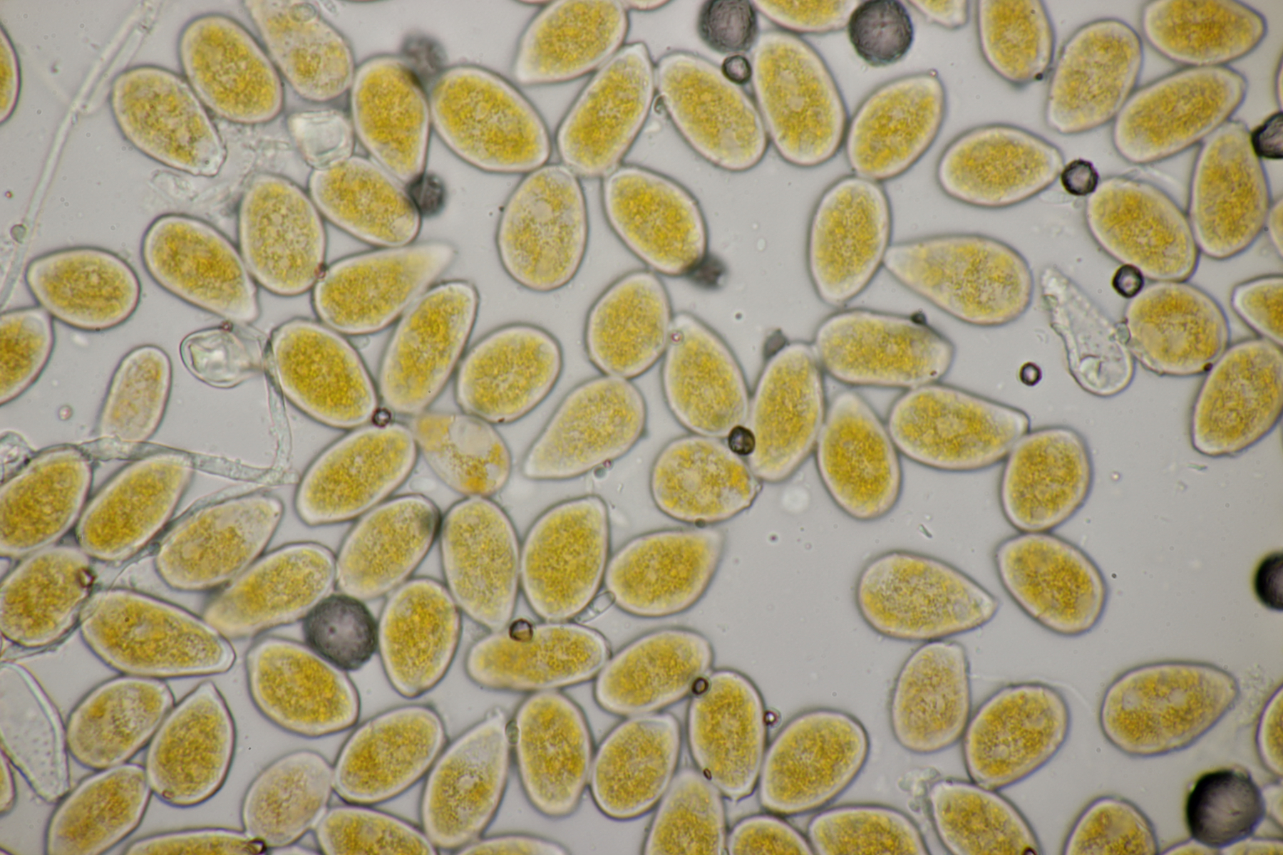 Es handelt sich dabei um den Rostpilz Melampsoridium carpini der an Carpinus betulus wächst, aber auch an Corylus avellana (Klenke & Scholler) und Ostrya carpinifolia [Hager et.al. Wulfenia 10 (2003): 135-143] wachsen soll.