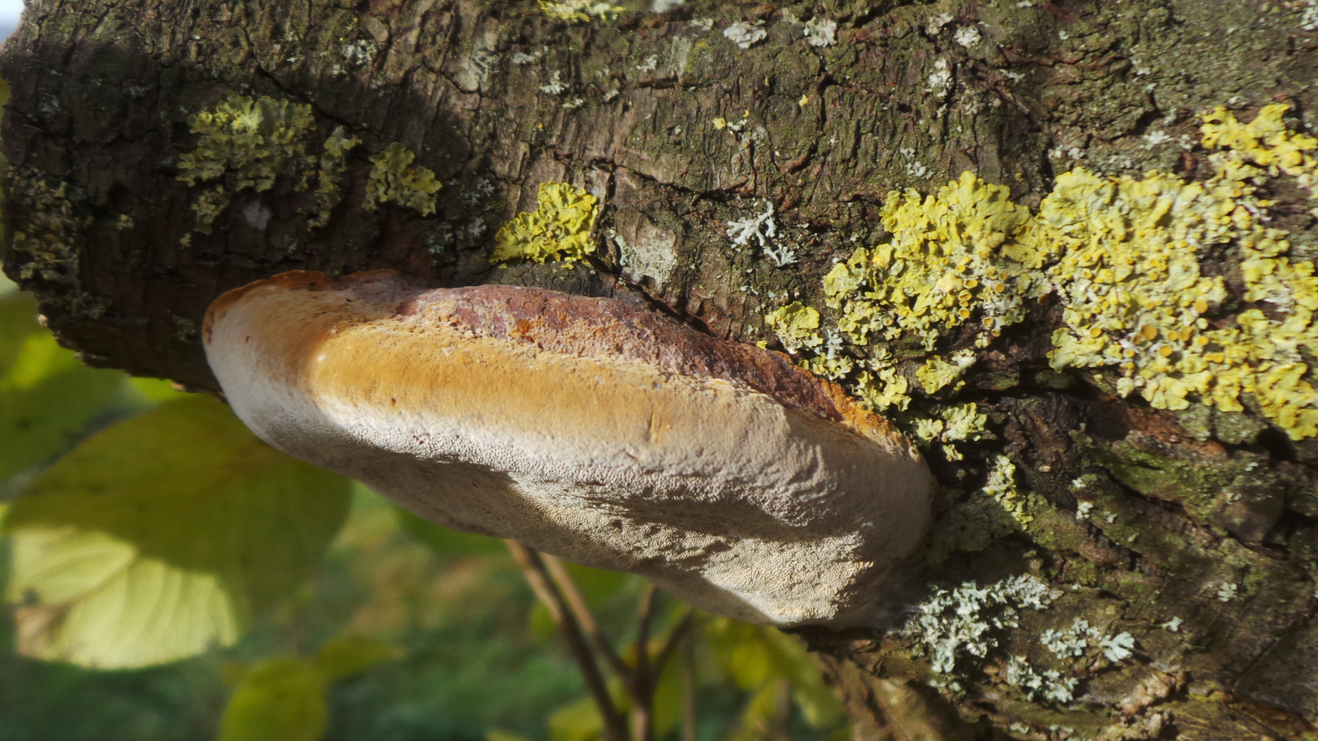 ist das ein Feuerschwamm, vielleicht ein Pflaumenfeuerschwamm? :