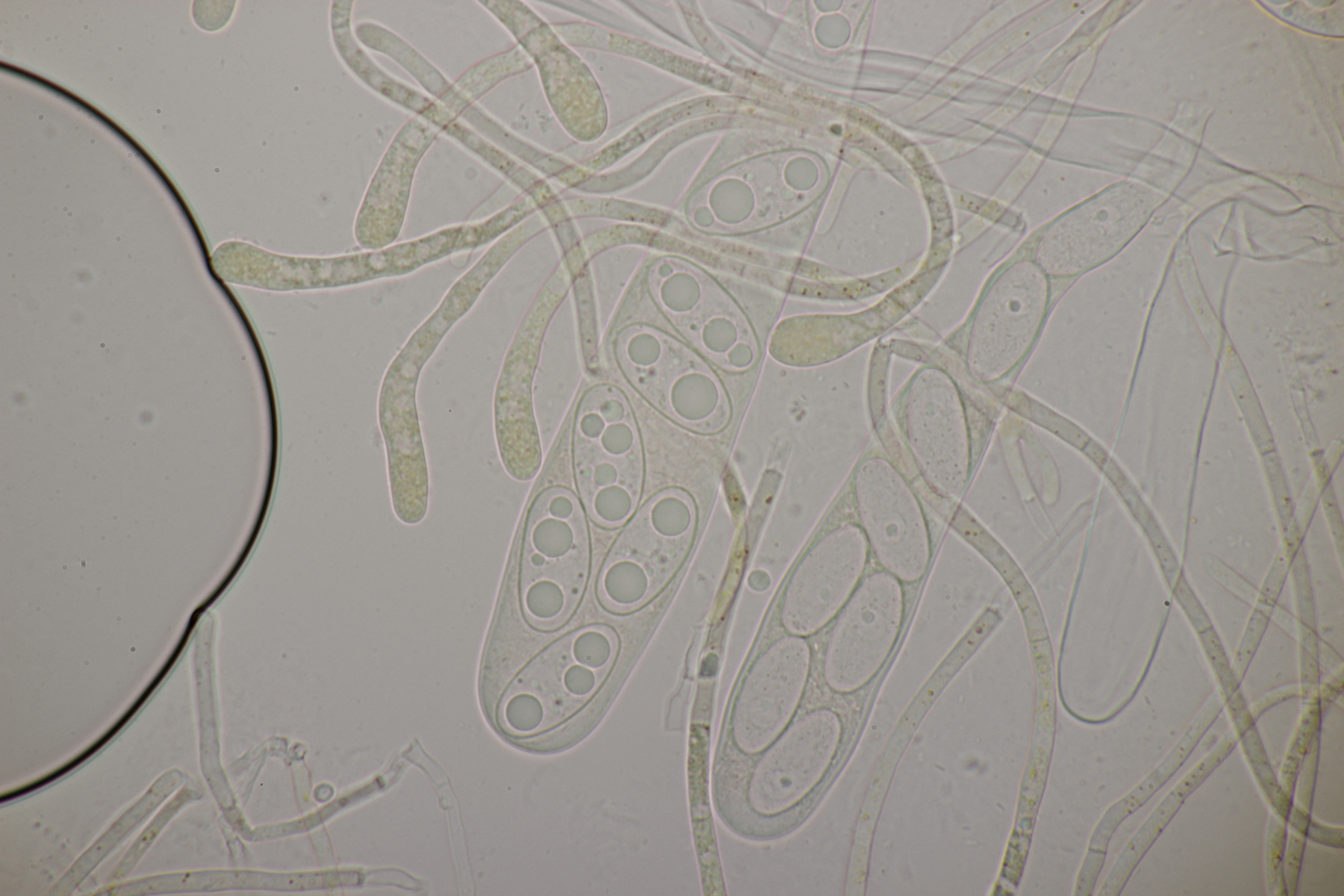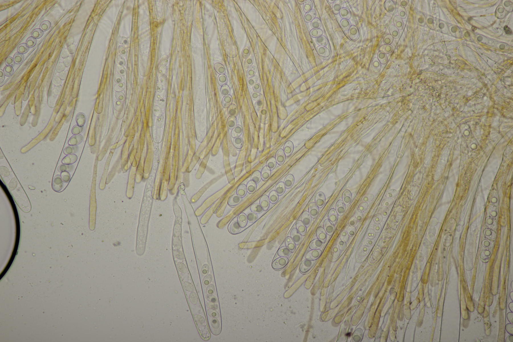 3. Ein haariger Porling auf Laubholz. Das Fleisch färbt mit KOH braun (allerdings nicht zu dunkel) während die Poren da eher eine pinke Verfärbung zeigten. Mit Eisensulfat reagiert das Fleisch grün-schwarz und mit Ammoniak verfärbte der Pilz pink. Sporengröße ist (10.5+-0.7) µm x (3.2+-0.3) µm, Q=3.3+-0.4 bzw. (9.5-12.0) µm x (2.8-3.6) µm, Q=2.6-4.2. Kann ich den als Coriolopsis gallica ablegen?