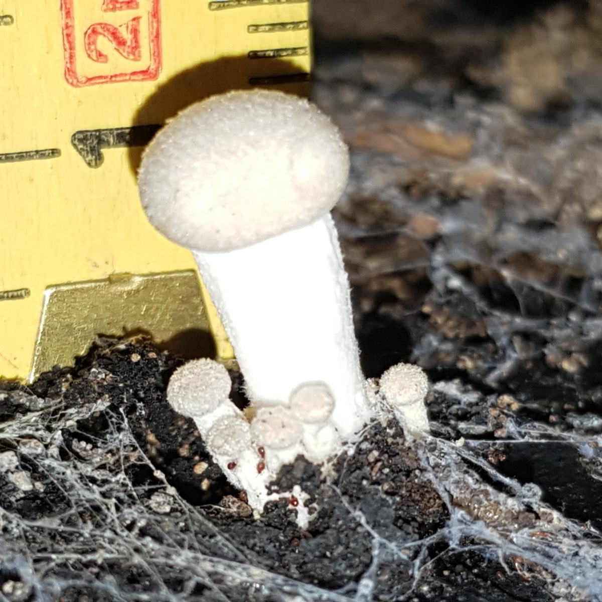 Vor Jahren habe ich ein Stück Holz, dass mit Austernpilzen besetzt war, zuhause in den feuchten Teil des Kellers gelegt. Jetzt wachsen sie wieder. Aber der Große schluckt die Kleinen... In 1 - 2 Tagen dürften die kleinen ganz geschluckt sein. Grüße Jürgen