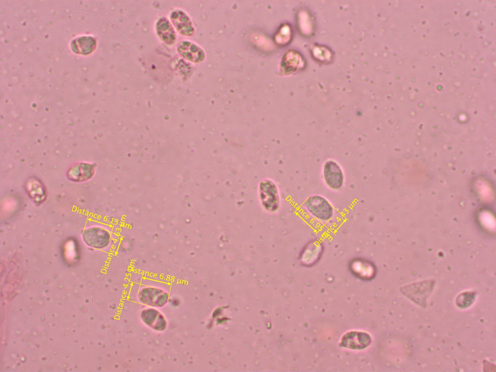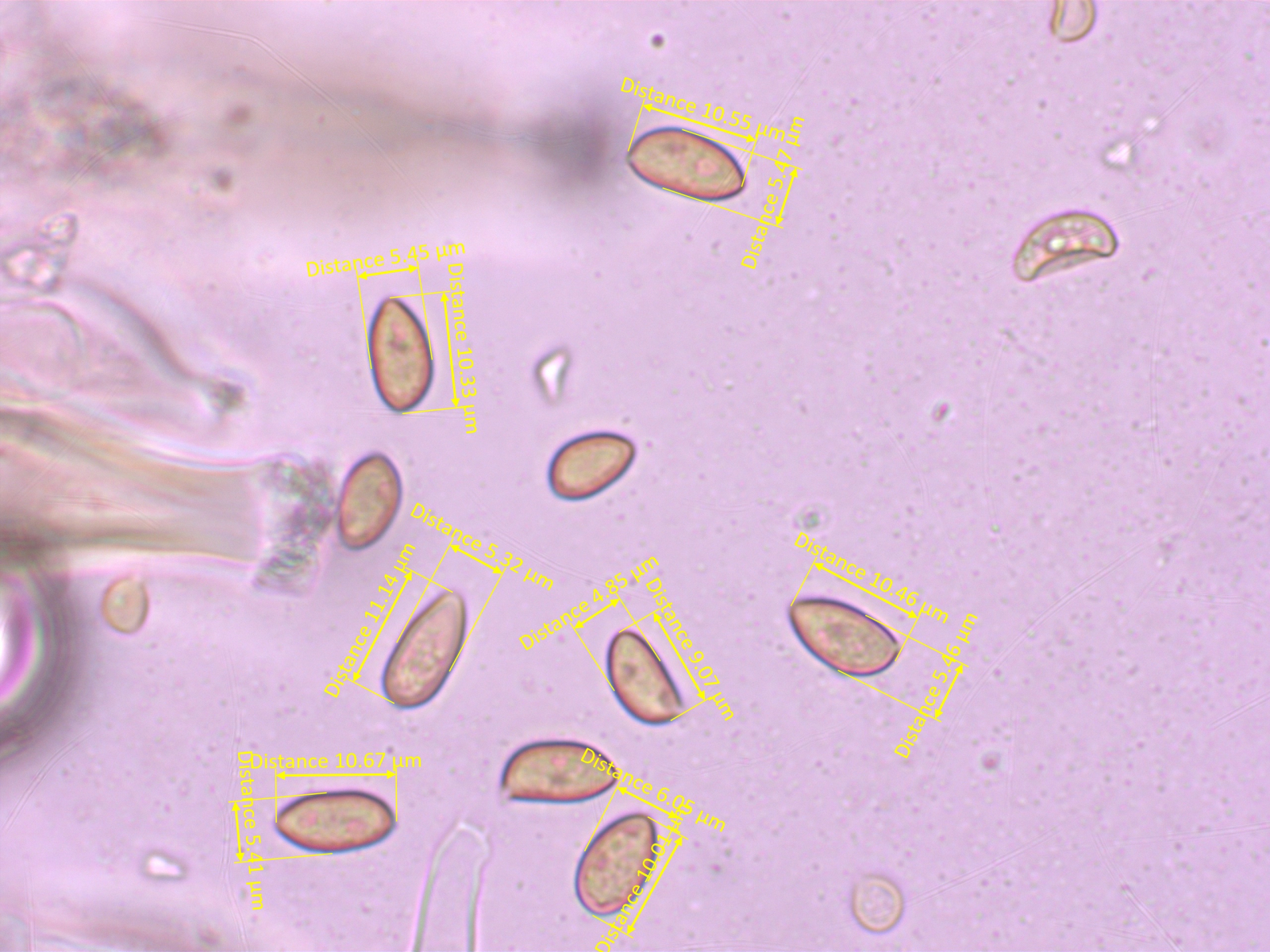 - Sporen: 9-10.5 x 5-6 µm, Avg 10x5.5 µm, Q = 1.64-2.09, QAvg = 1.83
