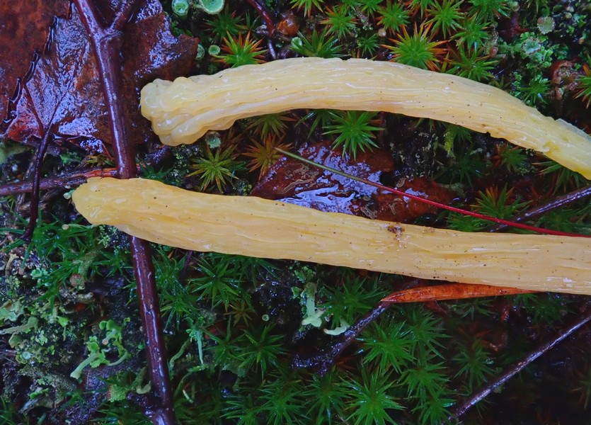 schöner Fund gestern am Buchenberg bei Turloff / MV in einem sandigen, heideartigen Gebiet mit Kiefern. Diese Keulen wuchsen meist einzeln, auch büschelig, bis ca 10 cm hoch. Basal meist sich verjüngend, aber seeehr zerbrechlich!! Keine äußere Reaktion mit KOH.