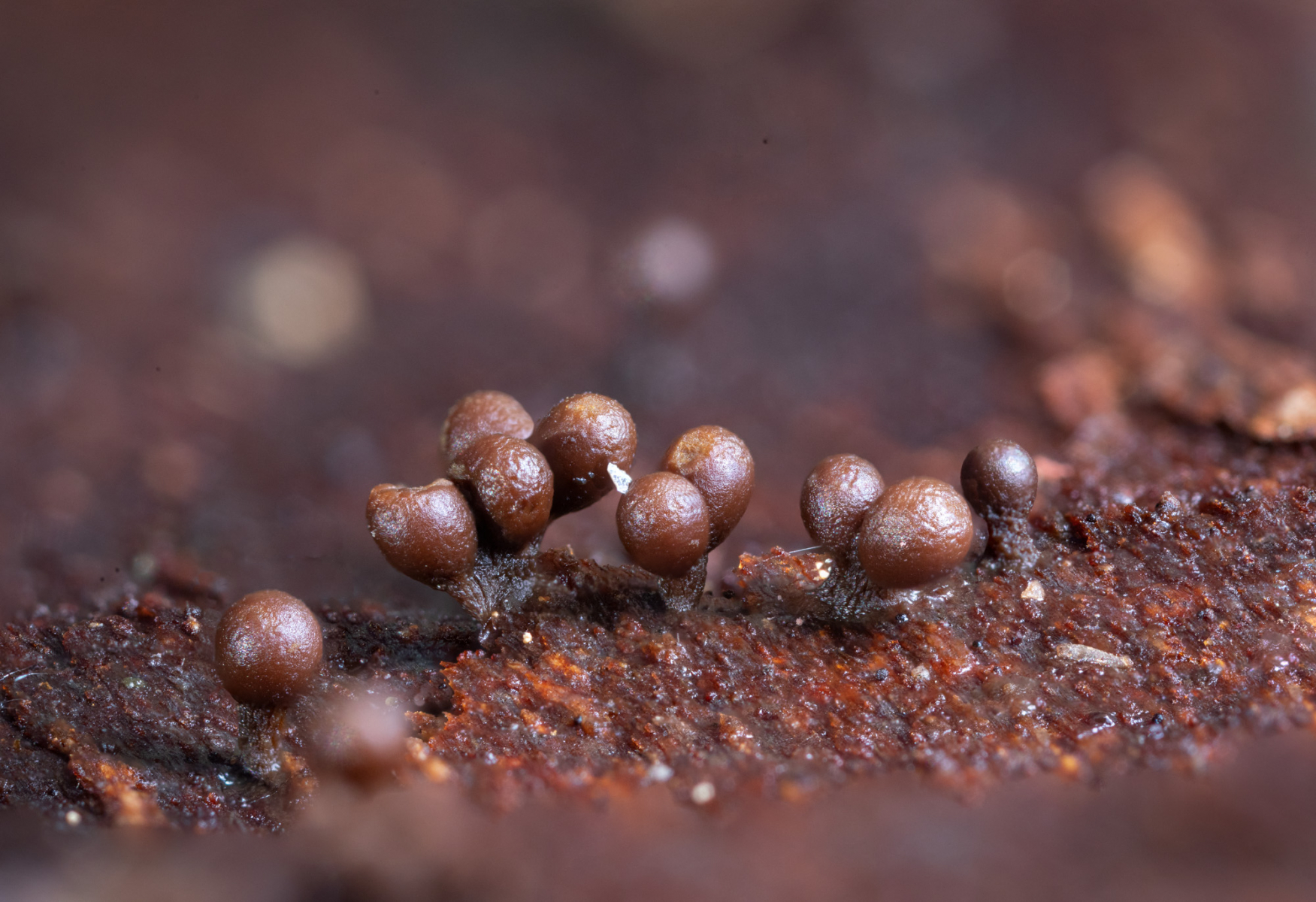 Die Sporocarpien stehen immer in kleinen losen Gruppen und sind +/- 1 mm hoch.