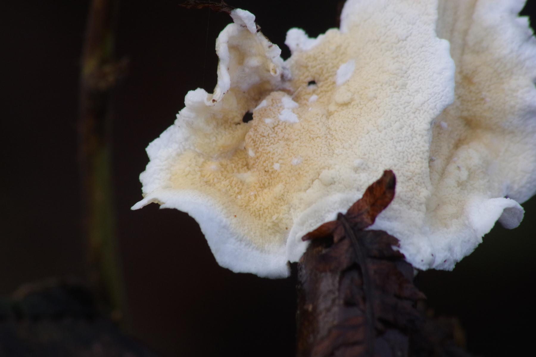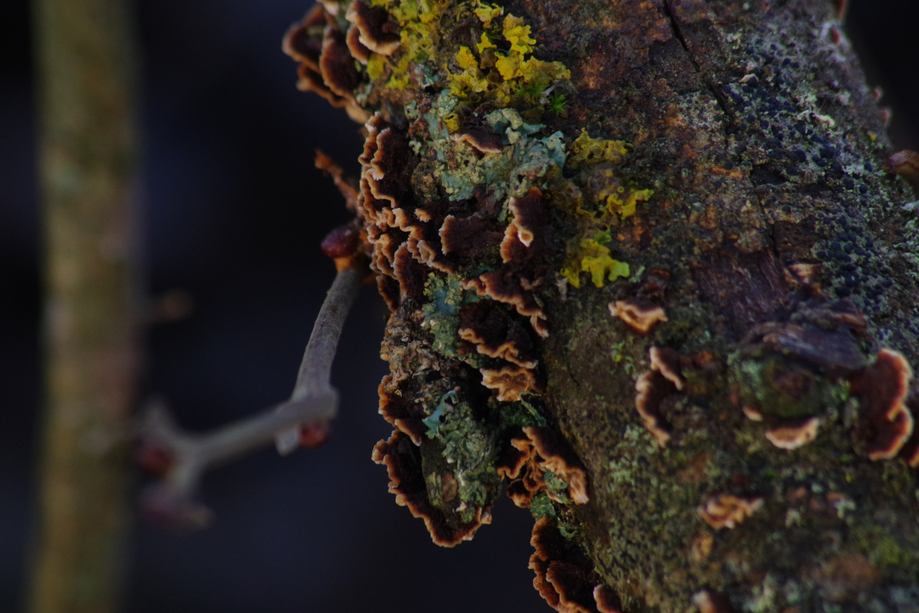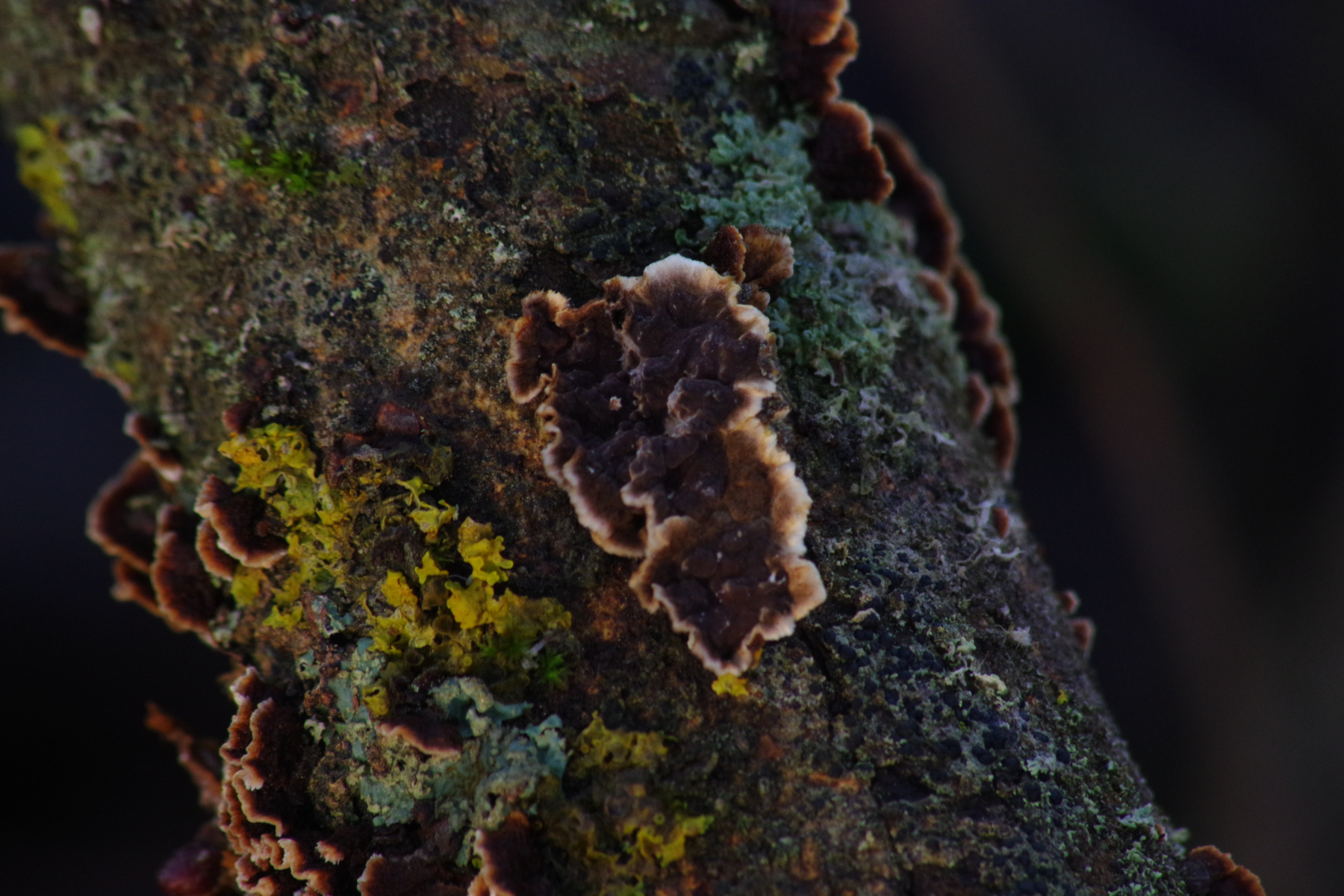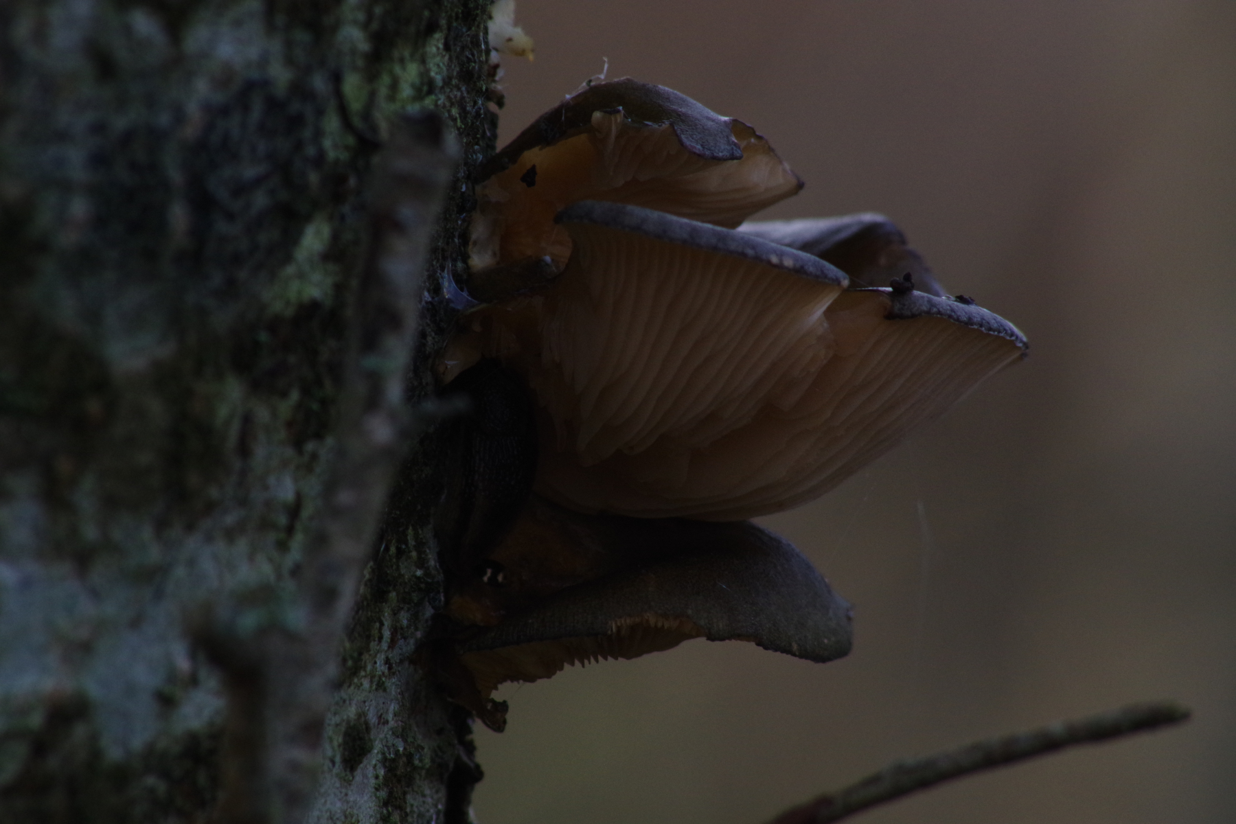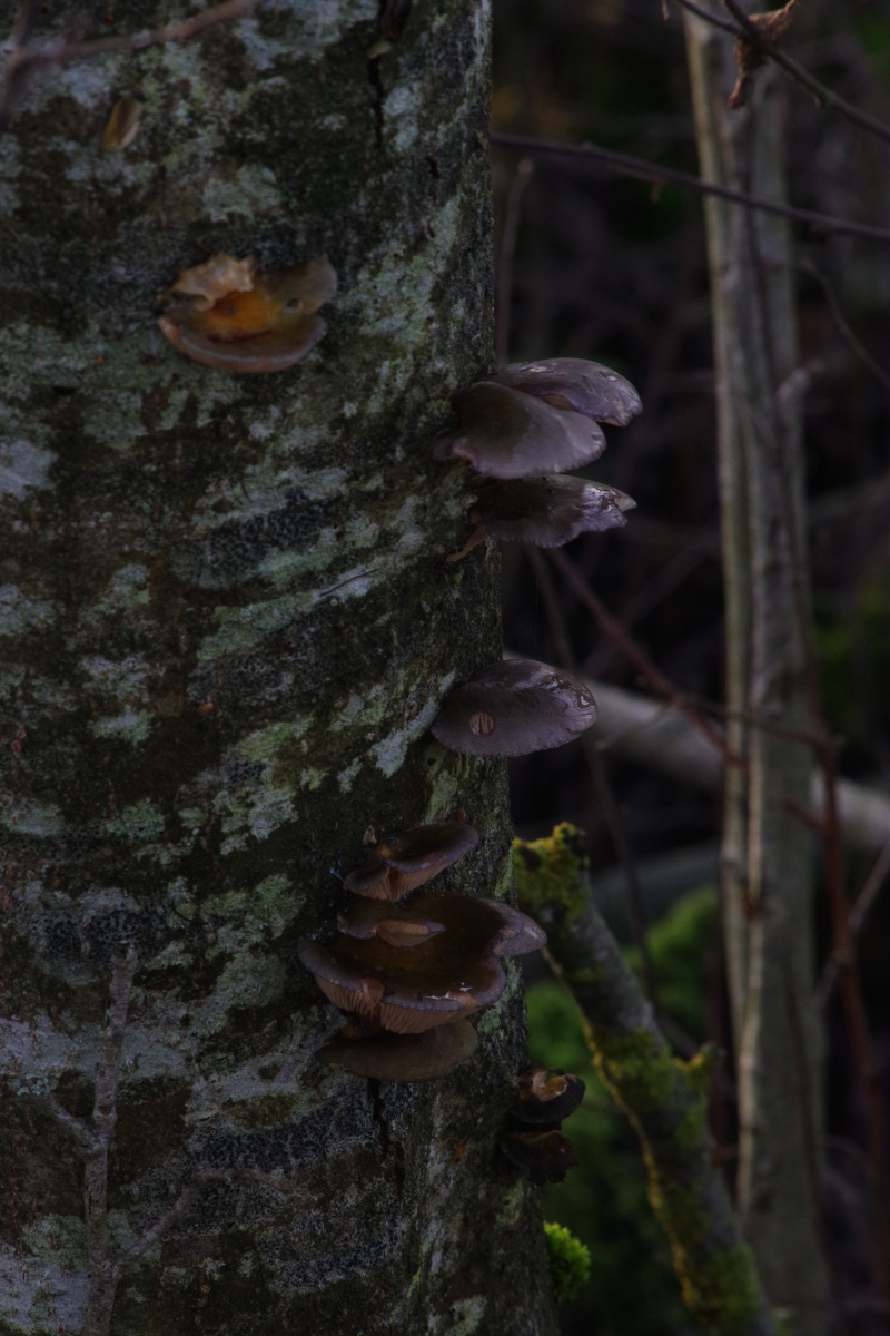 Hallo allerseits, in den letzten Tagen bin ich da an vermutetem Panellus serotinus vorbei, den hatte ich noch nicht im Foto. Nebenbei gab es noch das eine oder andere. Ein kleines Gebüsch, dass trotz Trockenlegung in den 80ern nicht trocken geworden ist, selbst in Trockensommern nicht, das von Bibern und Holzdieben klein gehalten wird, wo es aber nicht an Totholz mangelt.