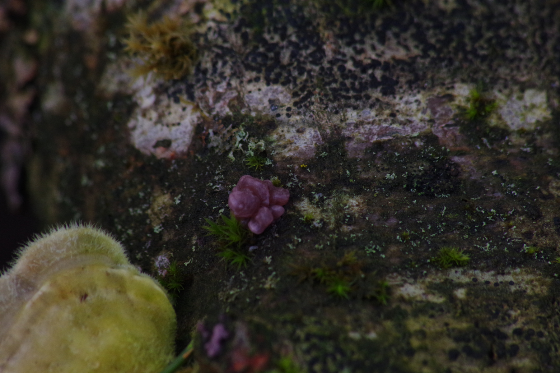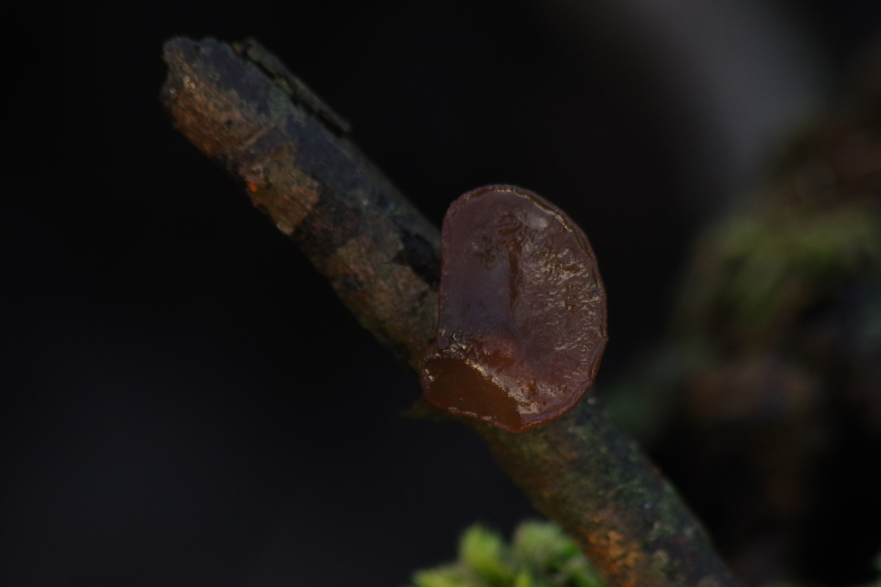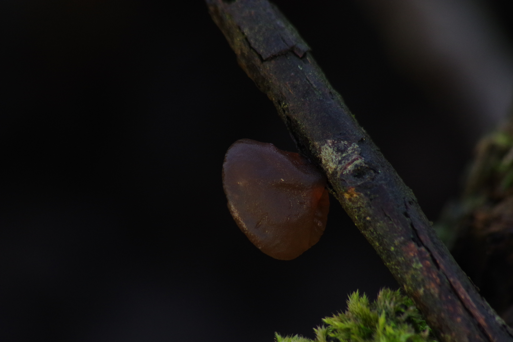 6) ein braunes Schleimdings, wohl Exidia truncata