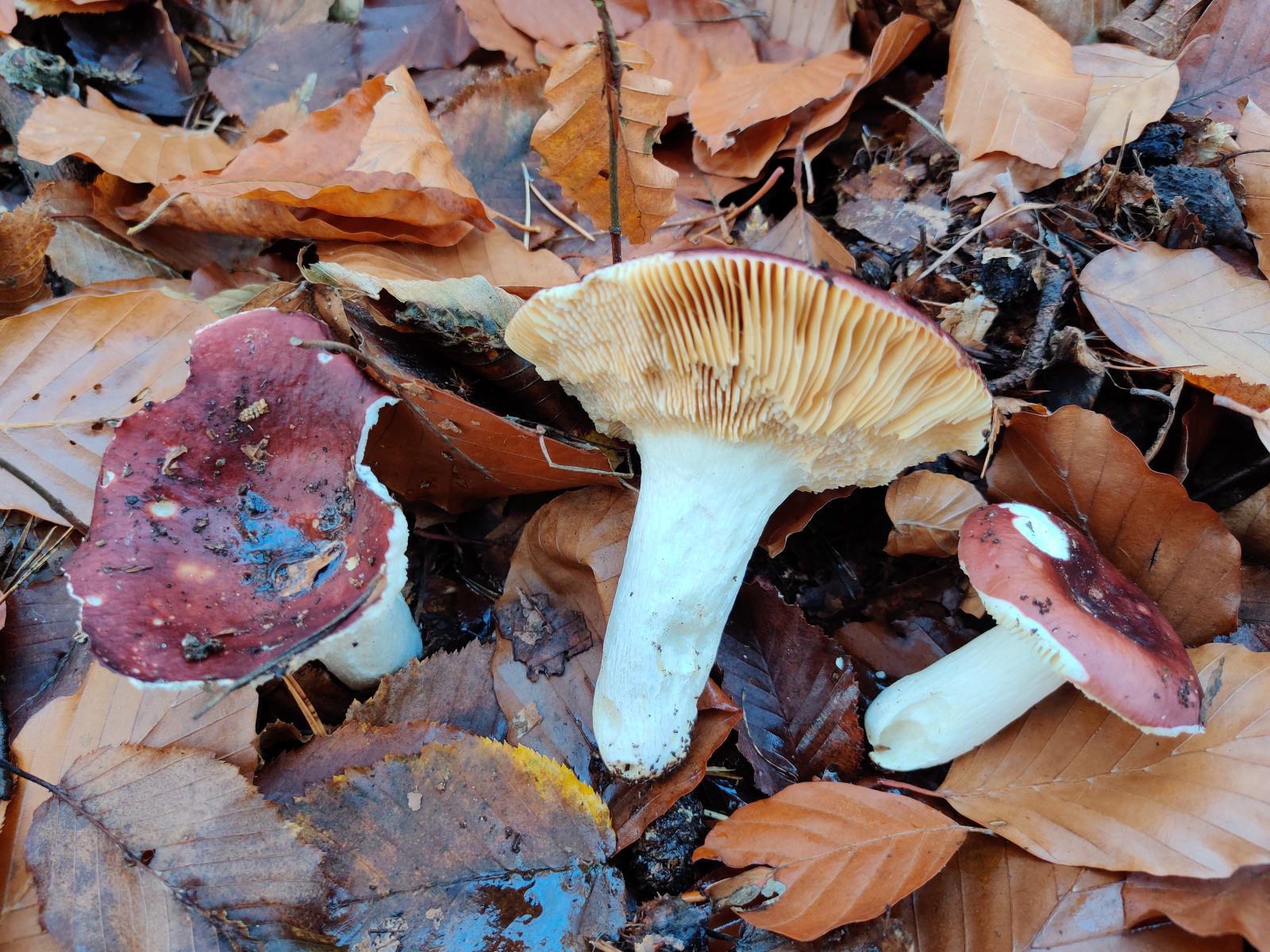Ich finde die Merkmale passen alle gut zu den Leder-Täublingen, vielleicht Russula integra oder R. romellii?