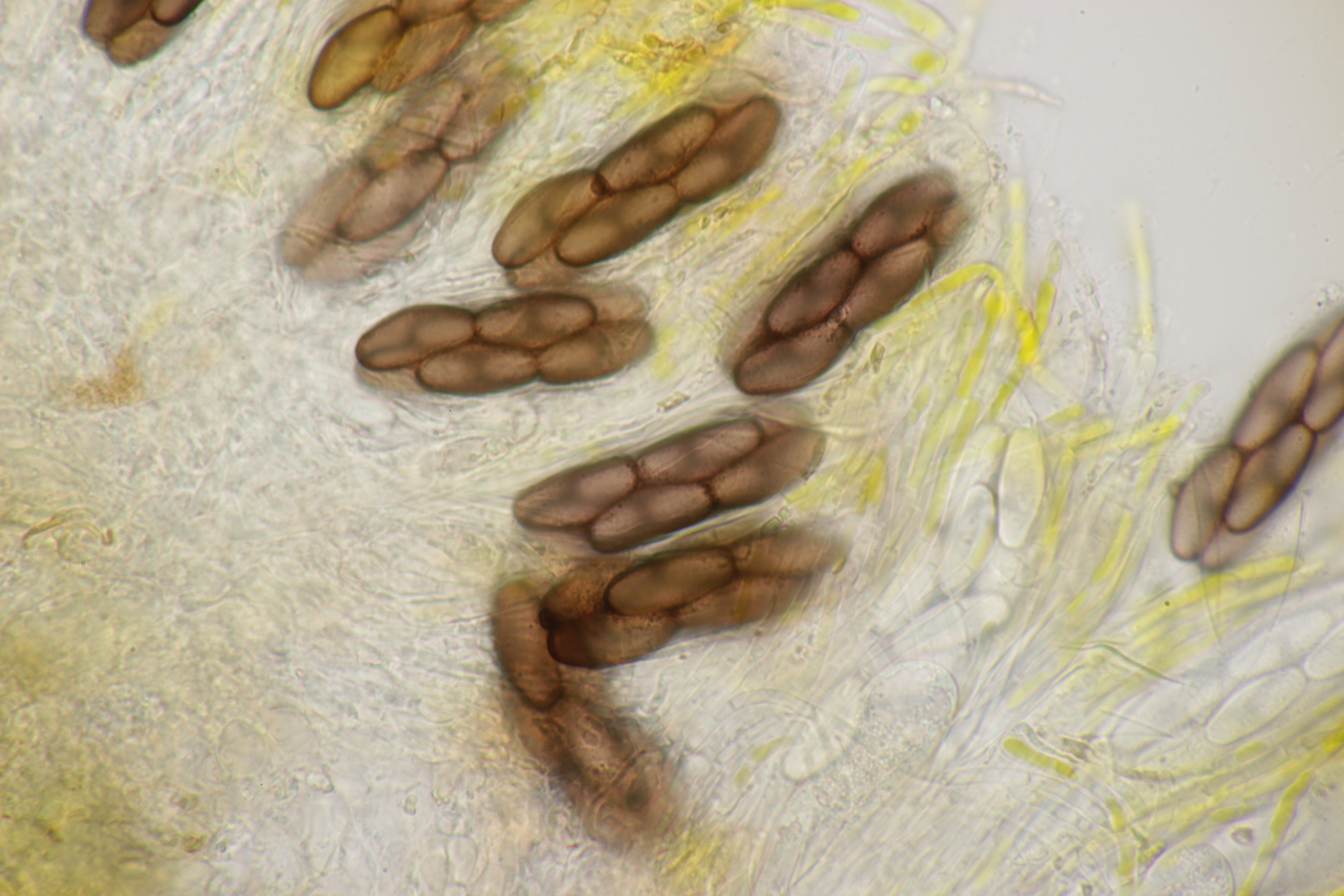 Heute habe ich dann diesen Thecotheus erwischt. Die Sporen messen (32.4+-1.0) µm x (14.3+-0.9) µm, Q=2.3+-0.1 bzw. (30.2-34.9) µm x (12.7-15.5) µm, Q=2.1-2.5. Damit lande ich bei Thecotheus holmskjoldii. Geht ihr da mit?