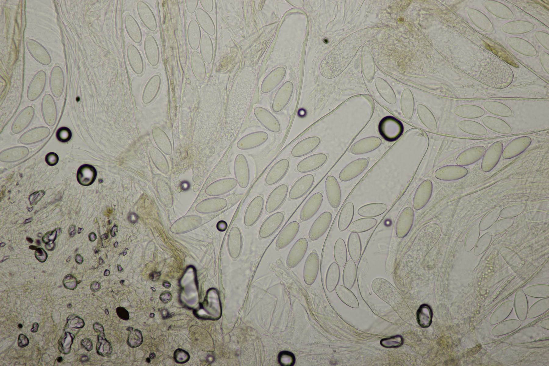 2. Der zweite Pilz hat riesige Sporen: (48.4+-2.3) µm x (27.5+-1.1) µm, Q=1.8+-0.1 bzw. (43.9-51.6) µm x (24.7-28.8) µm, Q=1.6-1.9. Das Perithecium hatte keine auffälligen Haare o. ä., die Asci sind 4-sporig