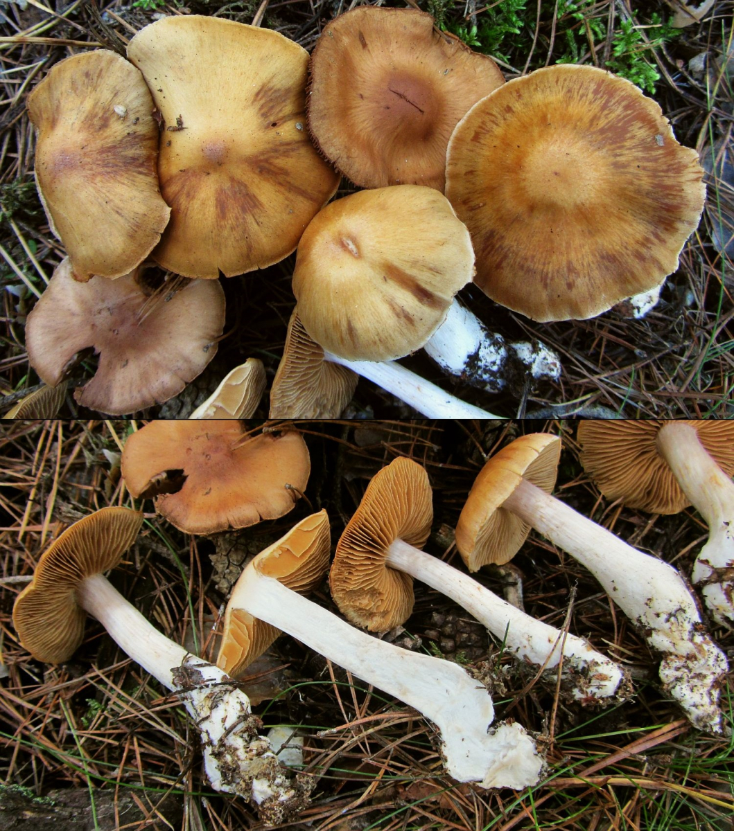 Begleitpilze wie zB Imleria badia, Lactarius hepaticus und deliciosus, Suillus variegatus und bovinus, Tricholoma terreum und equestre, Boletus edulis.
