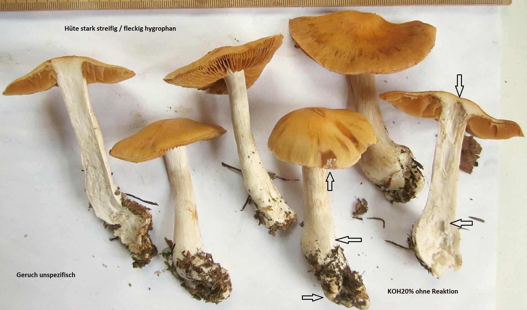 Telamonien sind ja normalerweise nicht so meine Zielgruppe, aber hin und wieder findet man was Markantes, und da folgende Pilze letzten Sonntag in diversen Gruppen reichlich rumstanden, und zudem noch irgendwie markant (und leuchtend) aussehen, kann man ja mal einen versuch starten.