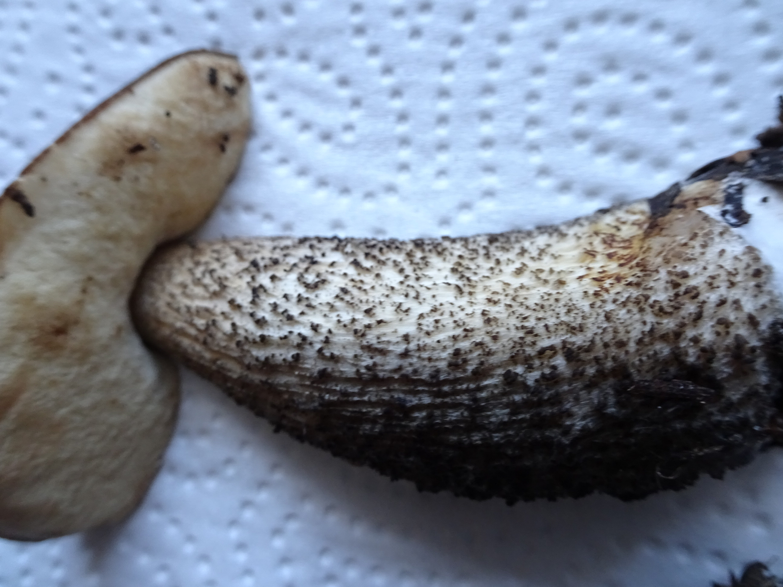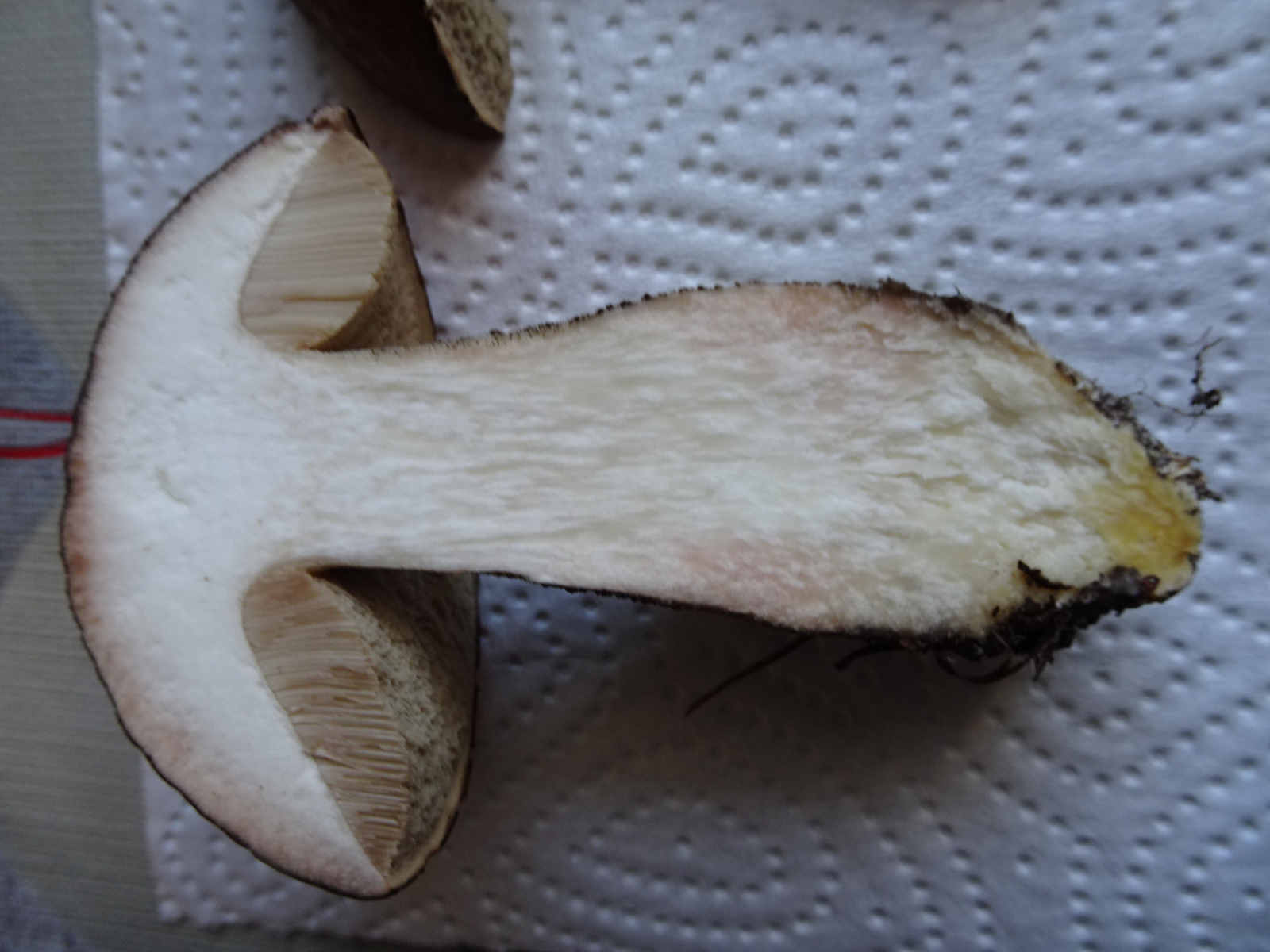 Ich habe diesen Raufuss schon einmal gefunden und mich über die rote Verfärbung beim Anschnitt gewundert. Heute fand ich ihn wieder und möchte ihn gerne bestimmen.