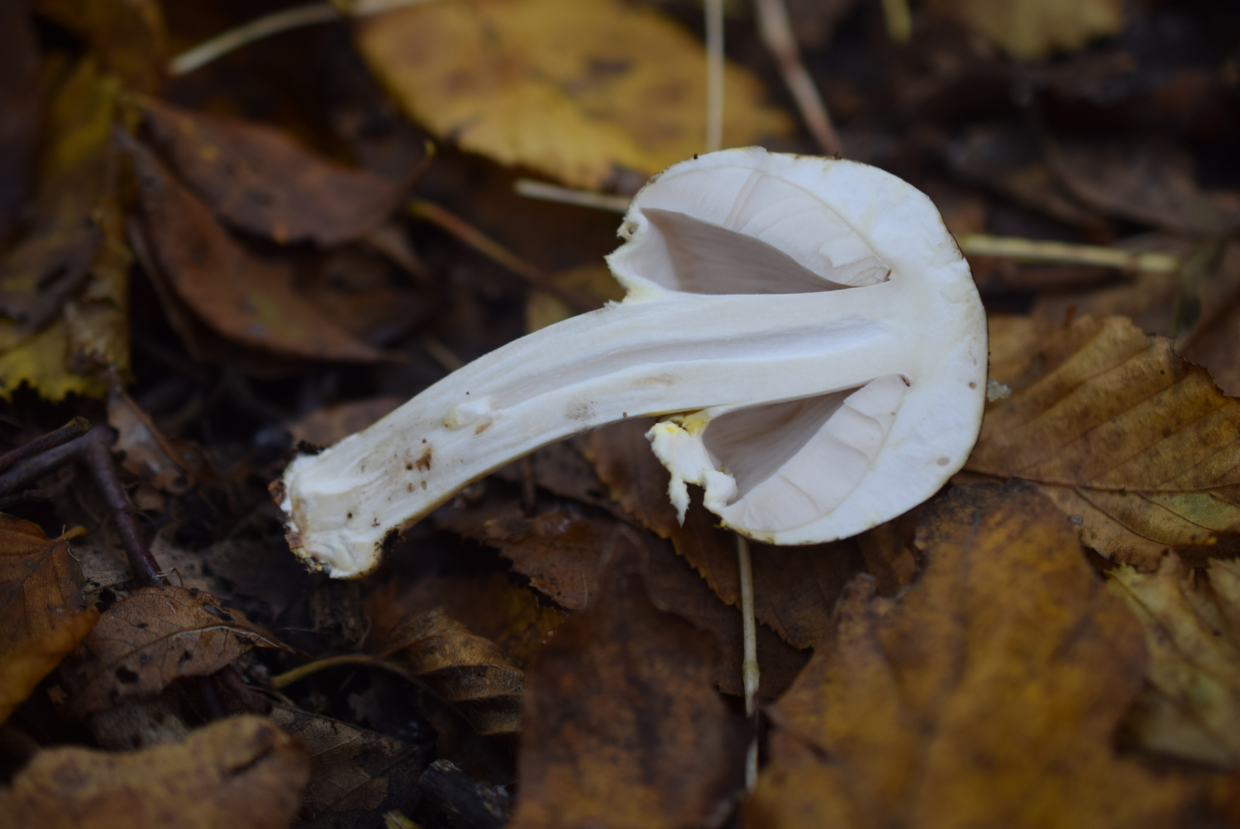Fundort Laubwald , keine Nadelbaum weit und breit . Ganze Gruppe über 20 Exemplaren zerstreut von junge bis alte Stadium . Geruch unangenehm , Urin und Karbol . Geschmack auch nicht angenehm .