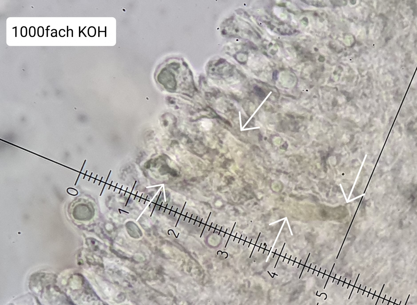 • Grüß dich, Sebastian, was du da zeigst, ist nicht I. whitei, sondern I. pudica. Deine Doku ist gut, es fehlen nur Hymneialzystiden, die man gänzlich sieht, also mit dem Fuß, denn der trägt oft zur Bestimmung bei (kurz, lang, Basis abgerundet, trunkat...). In diesem Fall seh ich keinen ganzen Fuß, gehe aber davon aus, dass etliche Zystiden einen längeren nach rechts oder links gebogenen Fuß haben.