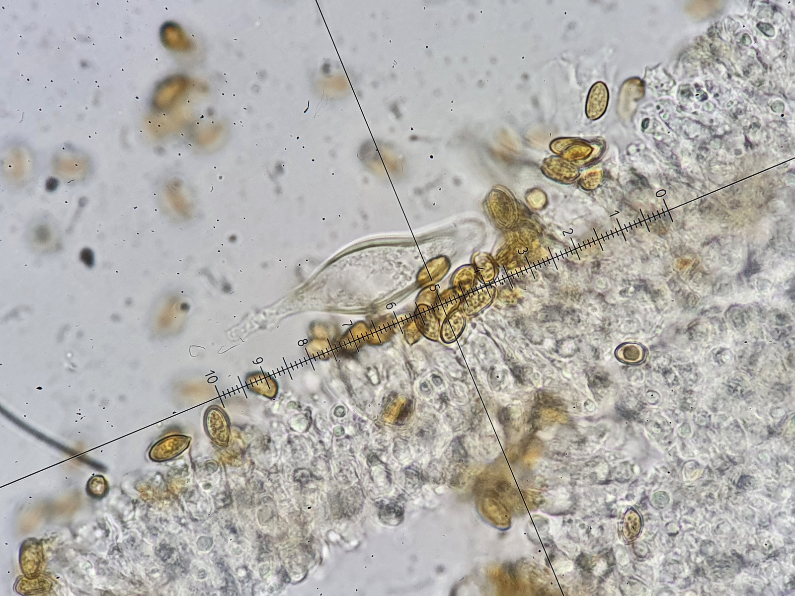 Die Hymenialzystiden habe ich nochmal untersucht. Gebogene lange schlanke Füsse finden sich in jedem Fall.