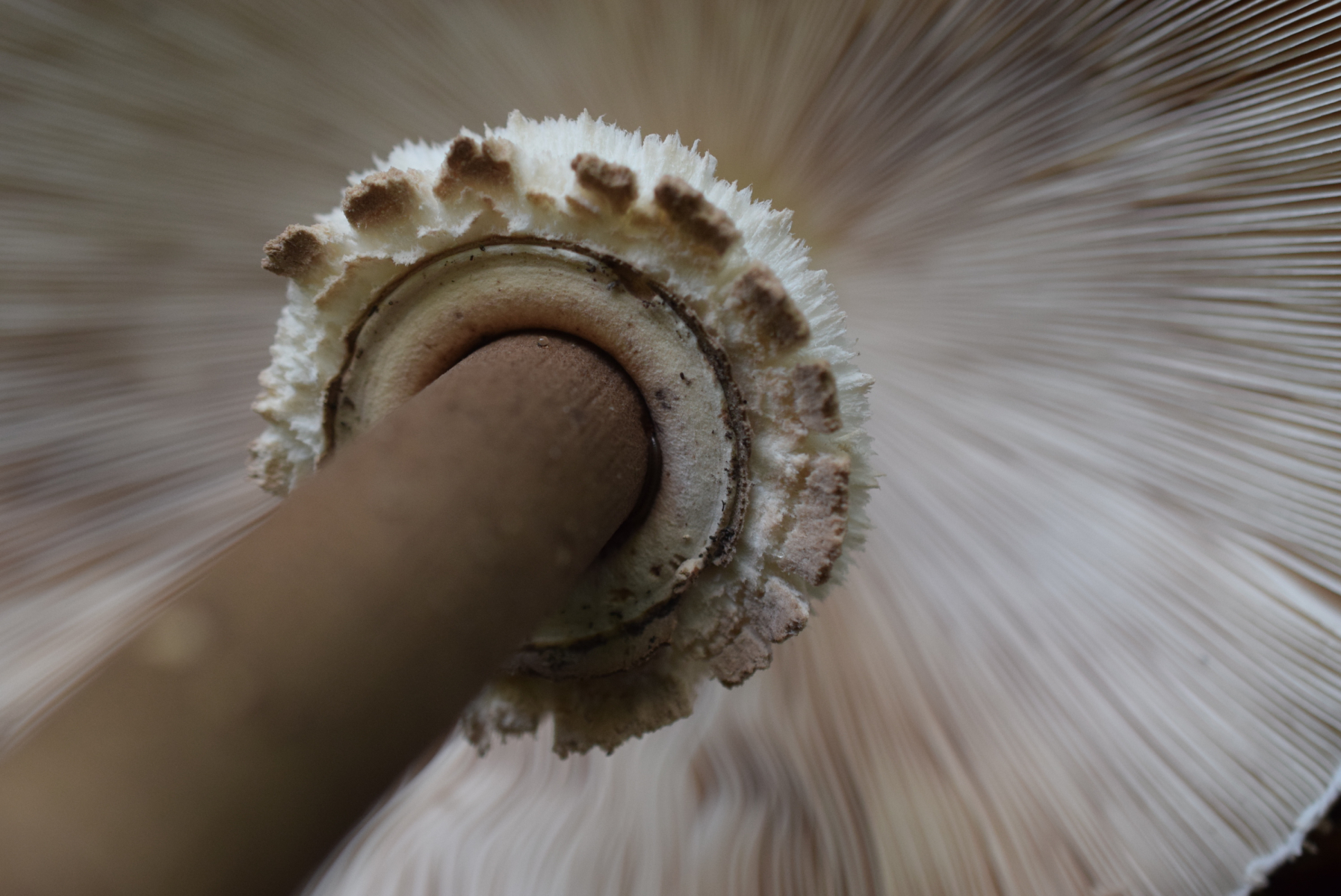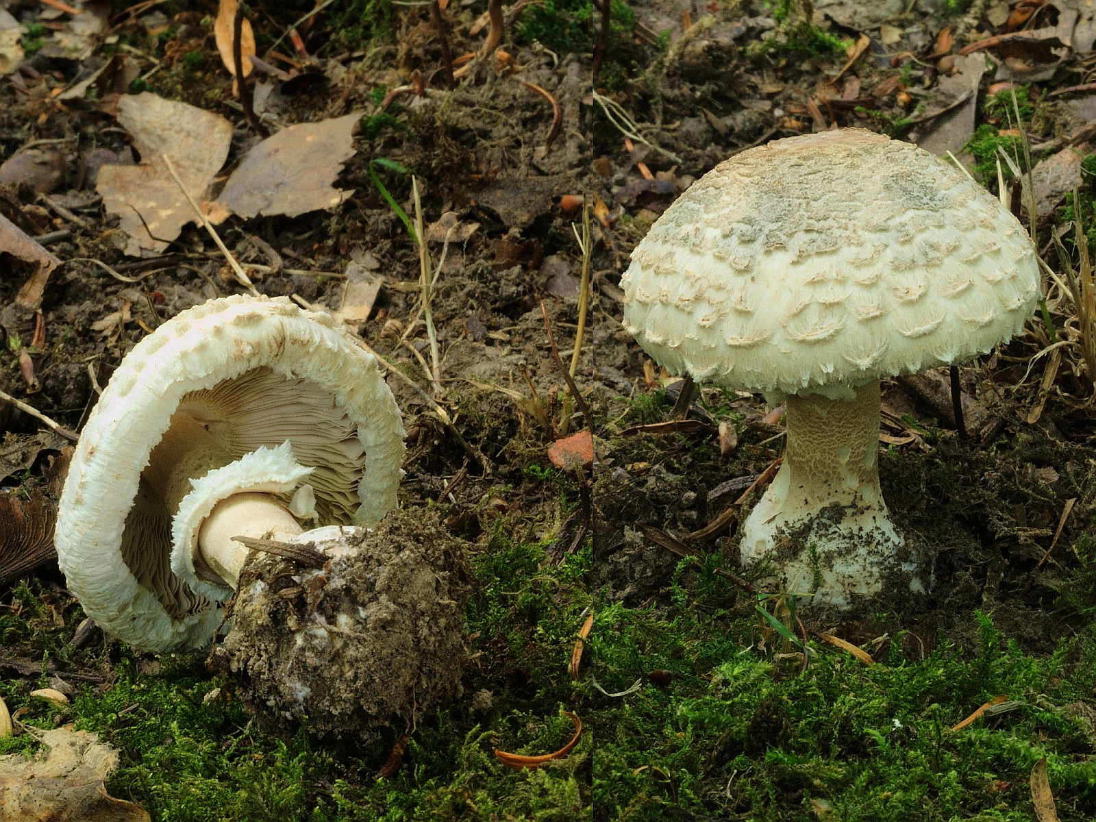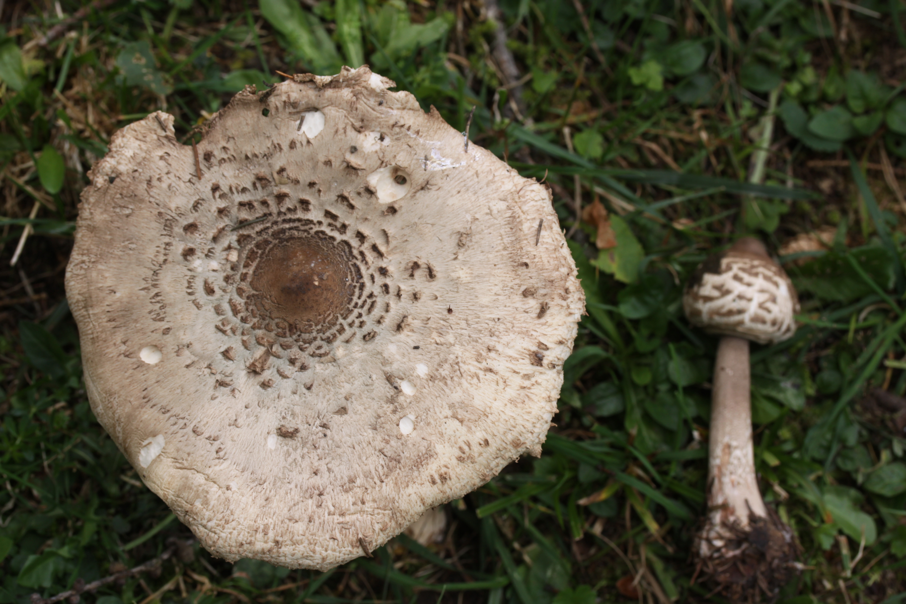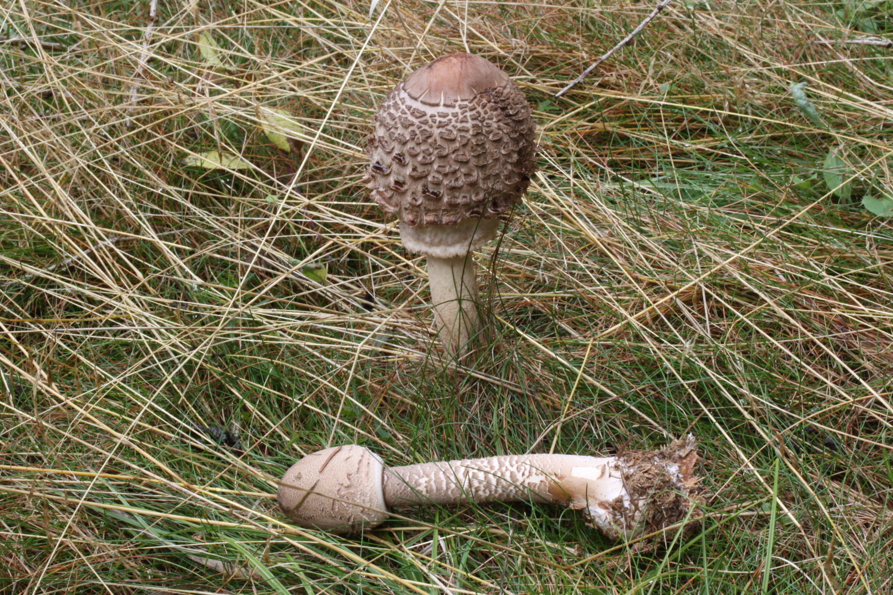 Glaube das alle Exemplaren gleiche Art sind . Hab keine Andere Macrolepiota Arten gefunden , auch sehr wenig andere Pilze ( Pilzarmezeit ) weil nach lange Trockenheit und etwas Regen kaum eun paar verschiedene Arten