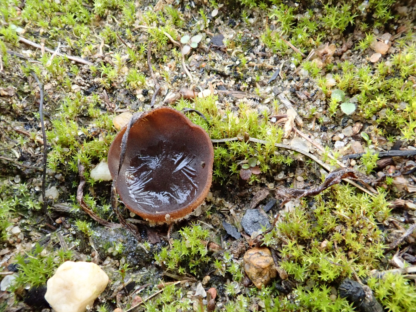 Einer der Brandstellenbecherlinge Plicaria endocarpoides hatte Eis im Becher.