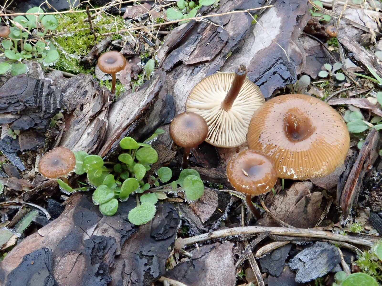 Dieses Mal konnten wir wieder eine große Zahl von Kohle-Leistlingen (Faerberia carbonaria) aber auch Kohle-Schüpplinge (Pholiota highlandensis) feststellen.