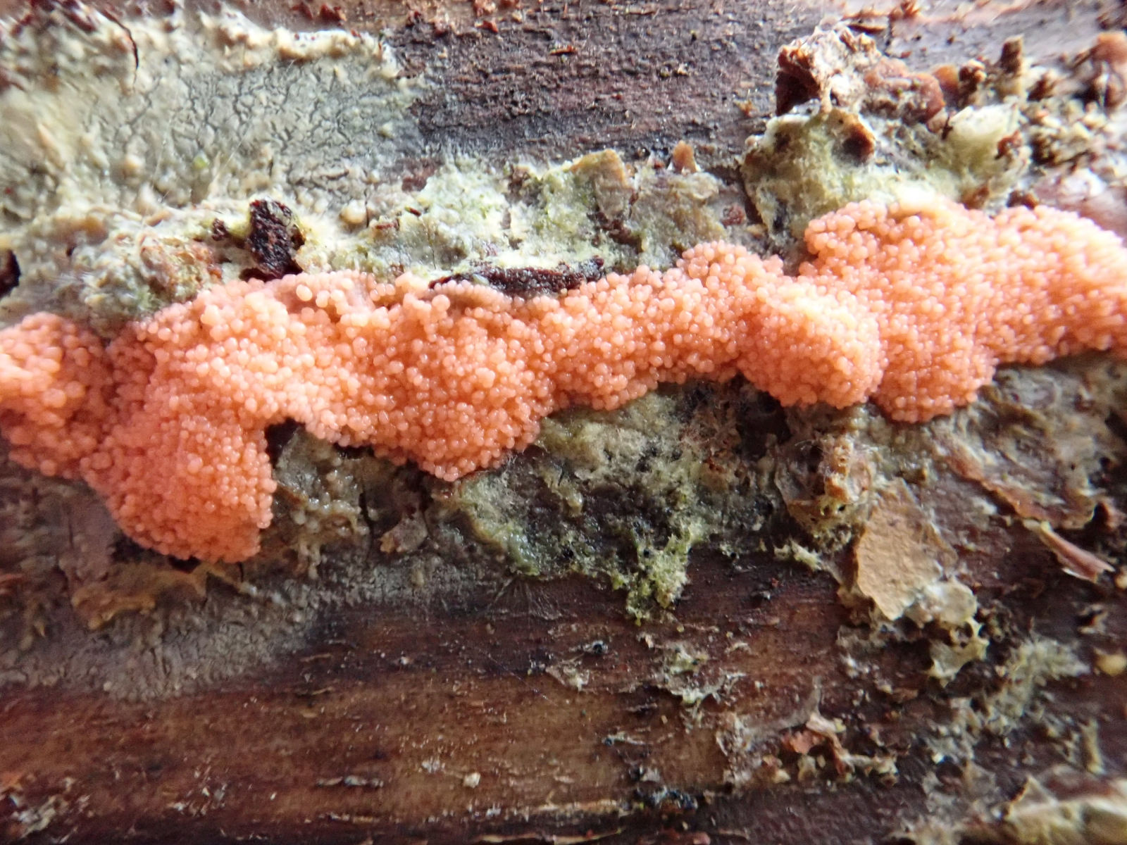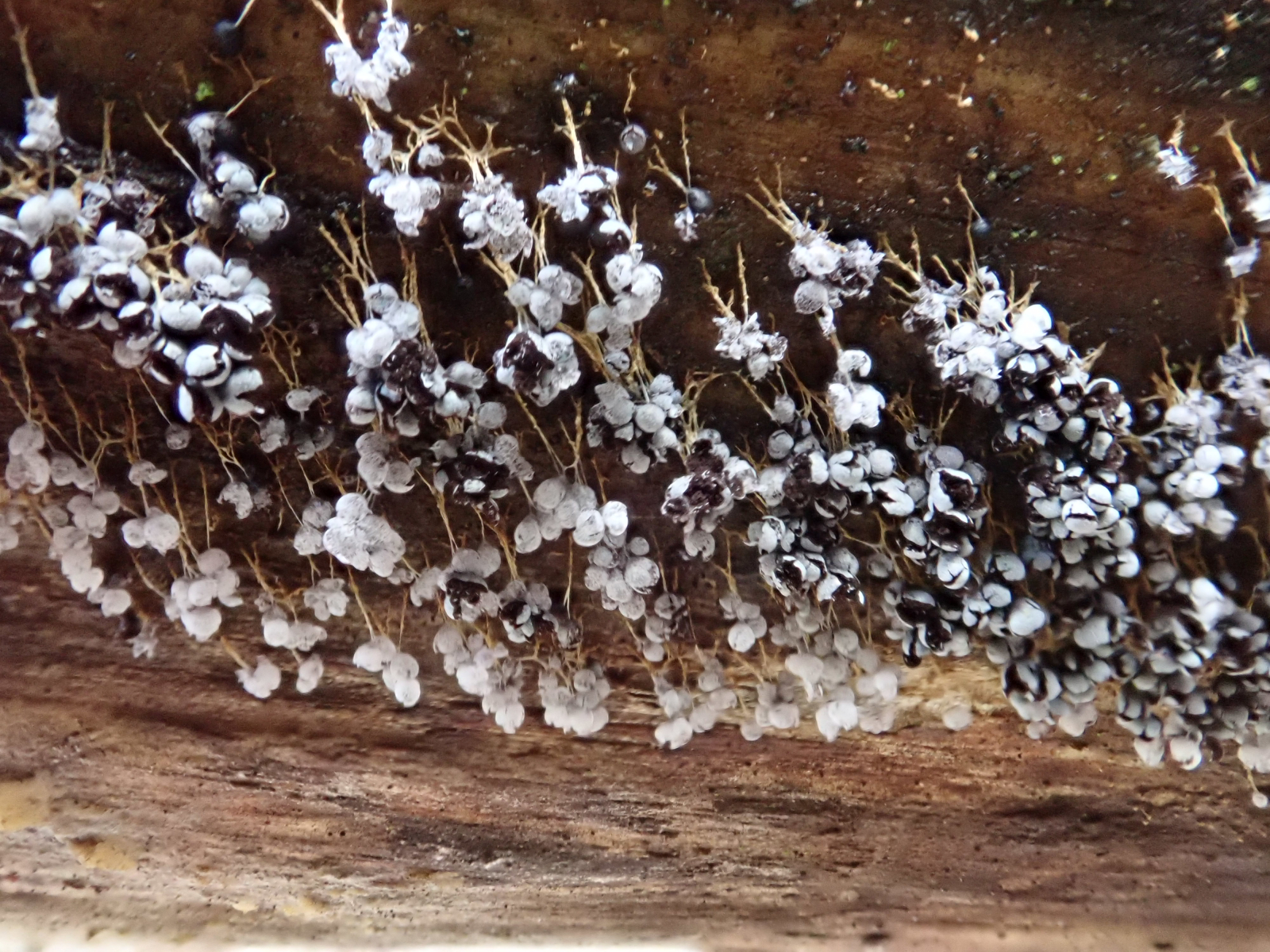 Auf einem Holzlagerplatz nahebei, wo die angebrannten Kiefern und auch Robinien gelagert wurden, fanden wir weitere Schleimpilze.