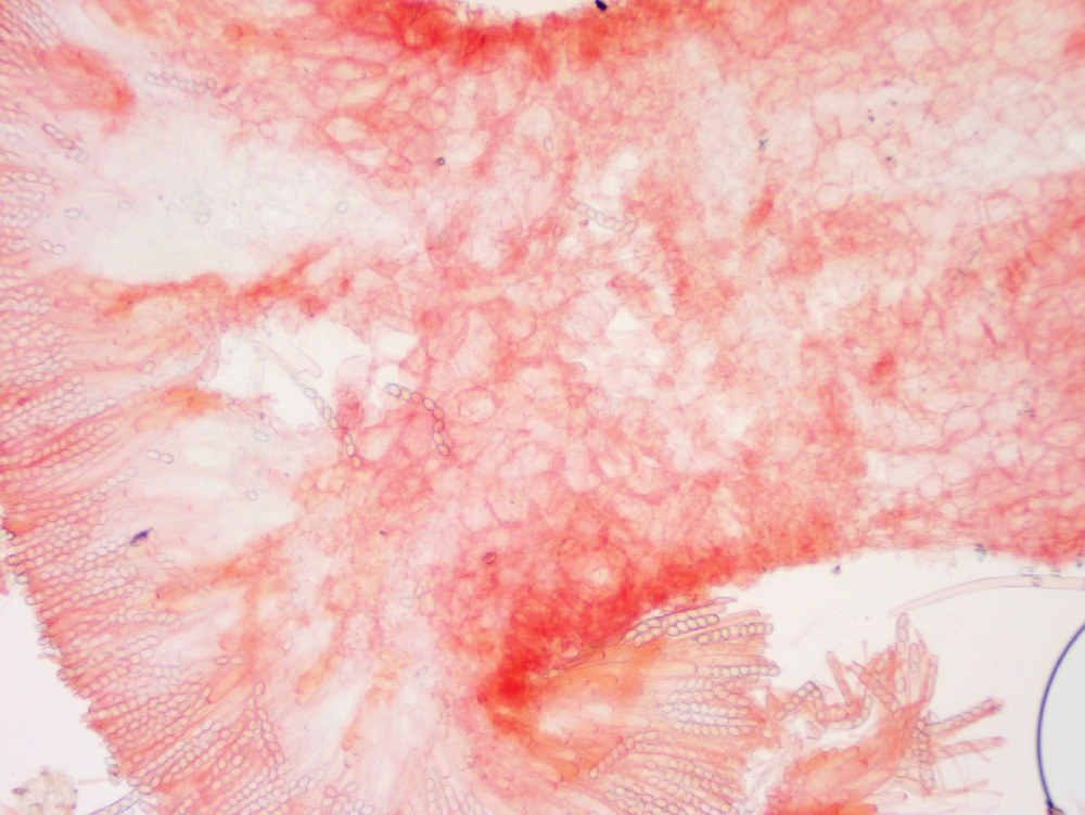Im Querschnitt kannst du alle Merkmale (Paraphysen, Texturen, Haare, Asci und sogar Sporen) erkennen, dann quetscht du das Präparat weiter und kannst so die Paraphysen und Asci deutlicher sehen. Bei den Asci sieht du dann auch, ob diese Haken haben oder nicht. Bei den Paraphysen siehst du dann den Inhalt.