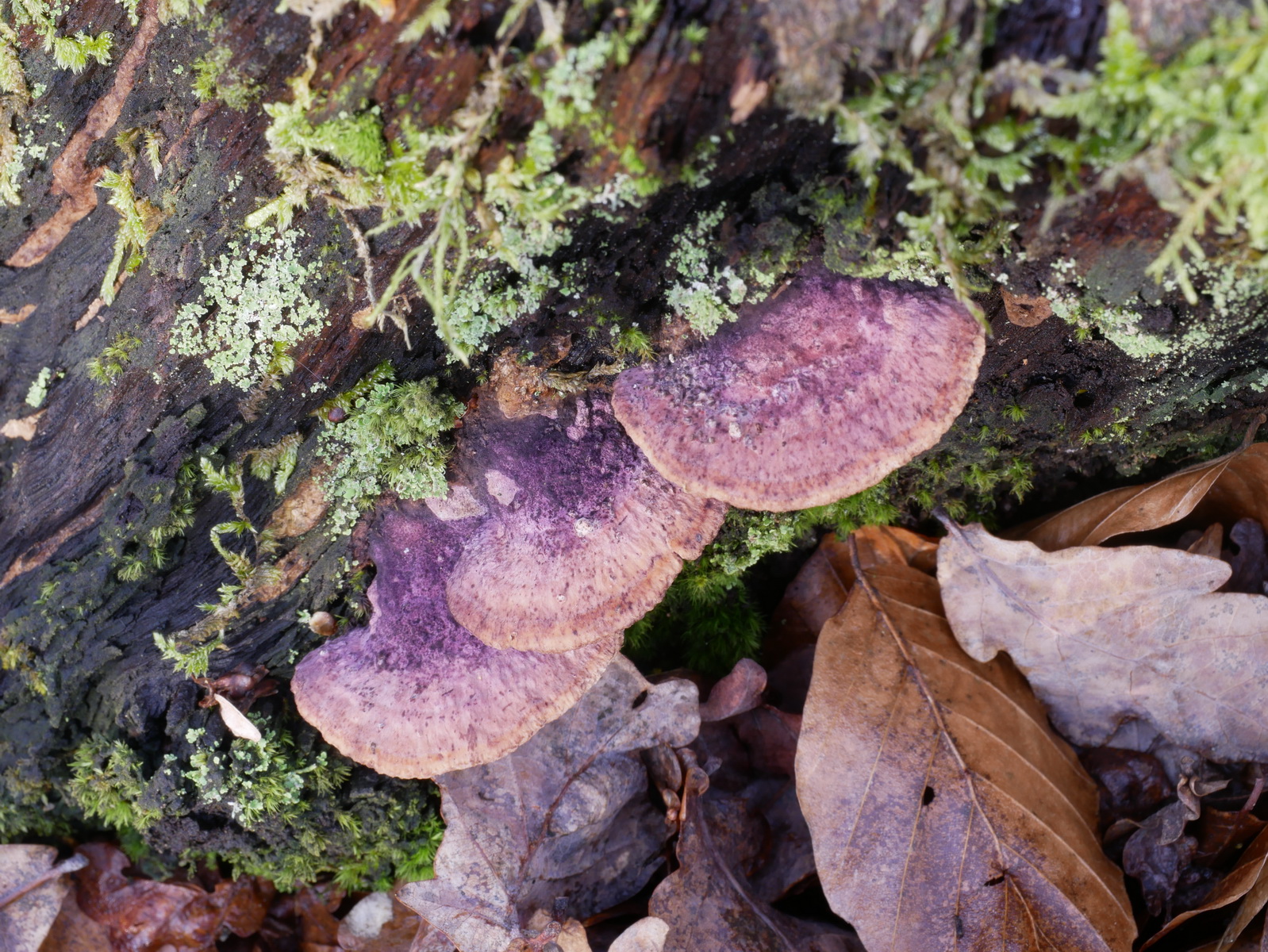- Möglicherweise könnte der Pilz bei einer bestimmten Temperatur solche Farbstoffe produzieren, um mehr Licht zu resorbieren. Tatsächlich habe ich solche Exemplare an feuchten, nicht sonnenexponierten Stellen gefunden. Allerdings könnten an sonnenexponierten Stellen das Lila ausgebleicht sein. Und auch da wo man lila Fruchtkörper findet, sind am selben Substrat und in unmittelbarer Nähe, solche ohne Verfärbung zu finden.