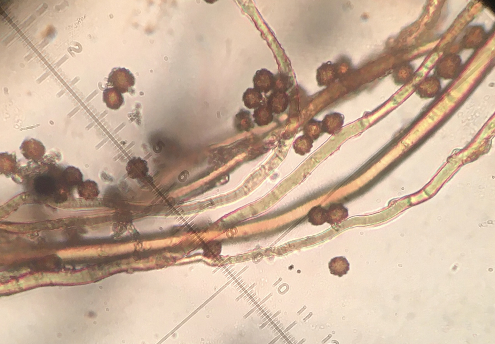 Die Sporen messen 5x5 und haben ein starkes Ornament, die Capillitiumfasern haben eine Breite von 2-6,5 und teilweise finden sich Anlagerungen. Da mir leider die Literatur fehlt, hoffe ich, jemand von euch kann meine Bestimmung bestätigen oder ändern.