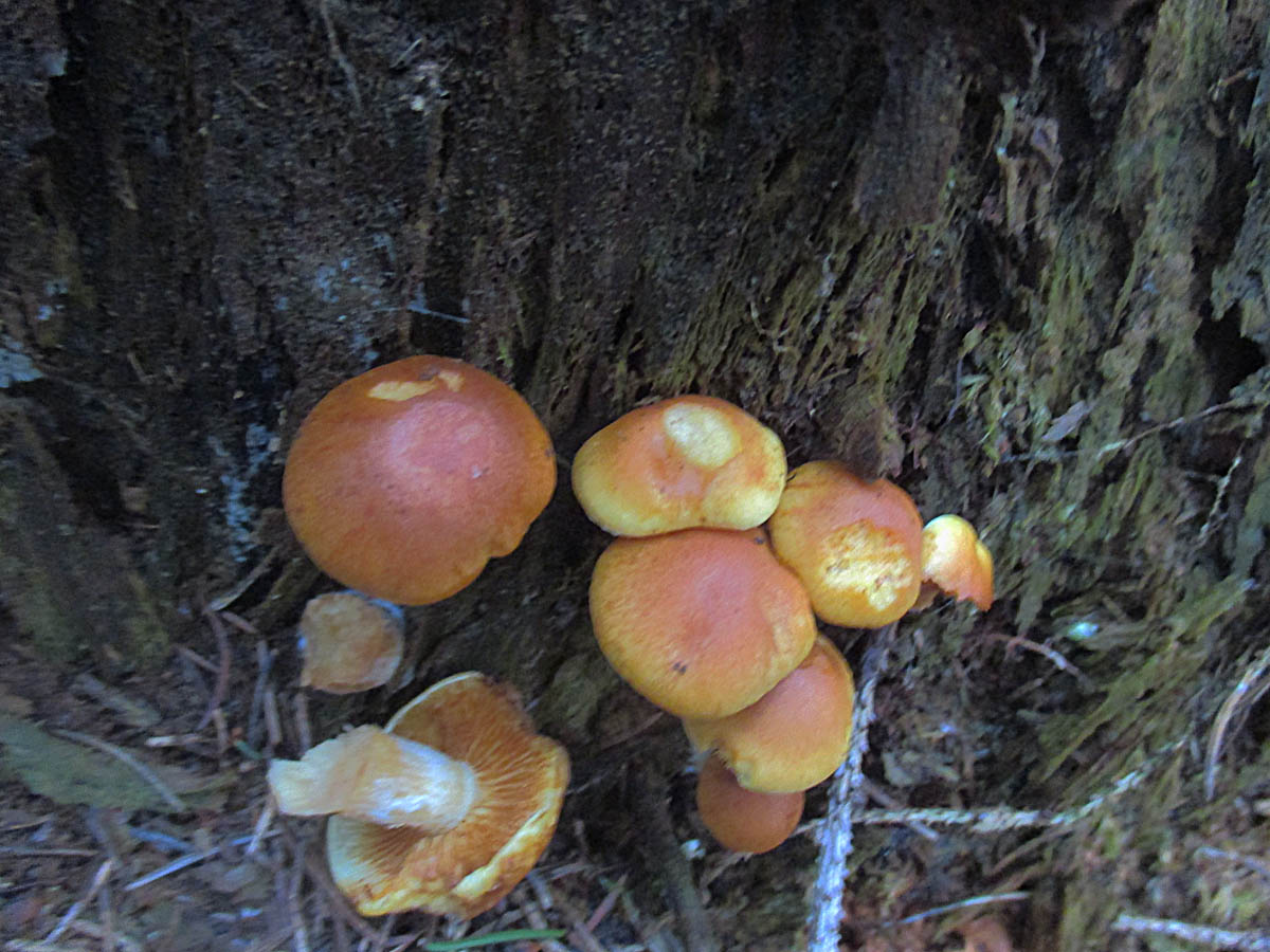 Vereinzelt waren Grüne Anistrichterlinge (Clitocybe odora), häufig Schopftintlinge (Coprinus comatus) und sehr häufig Geflecktblättrige Flämmlinge (Gymnopilus penetrans) zu sehen.