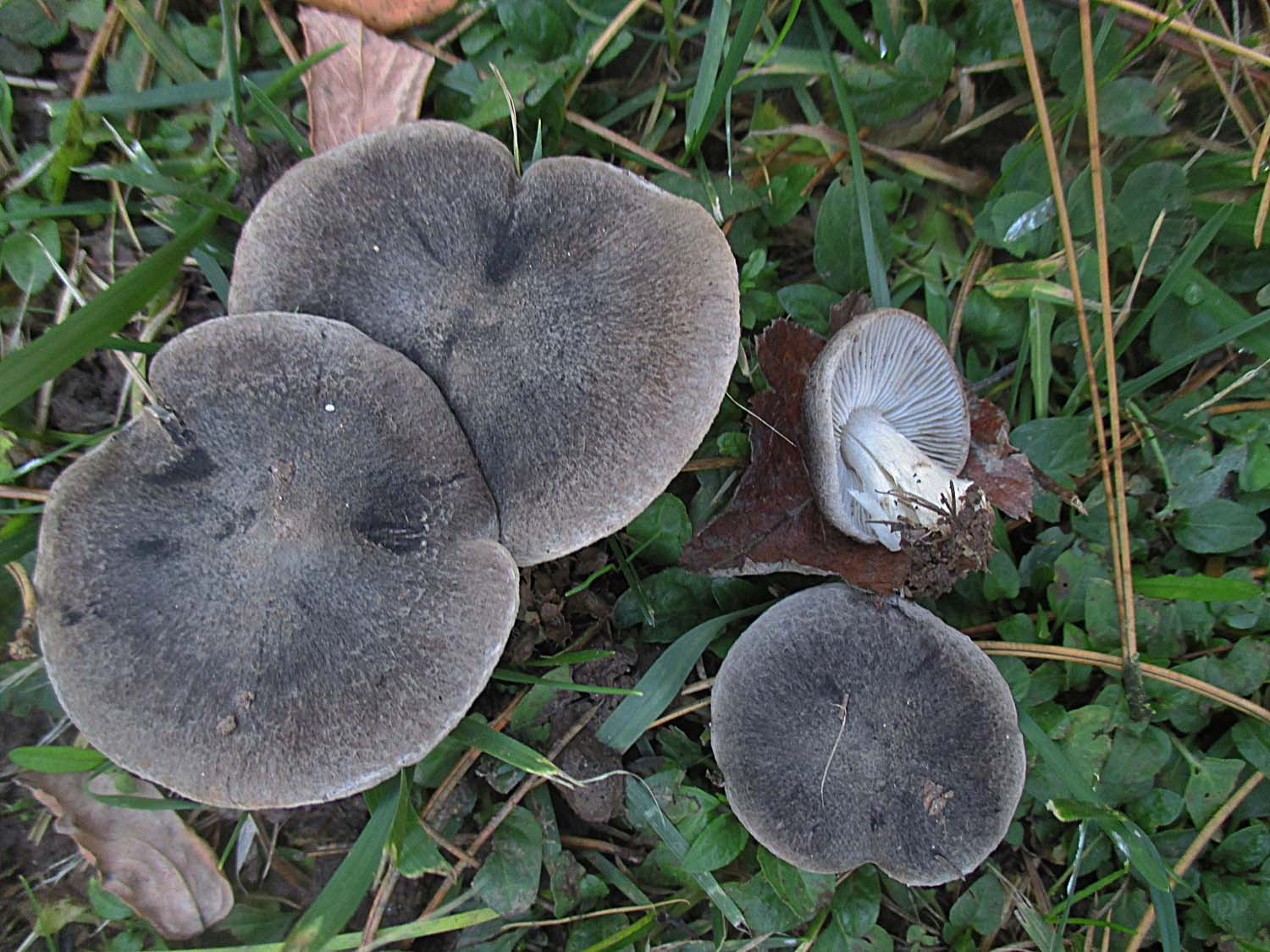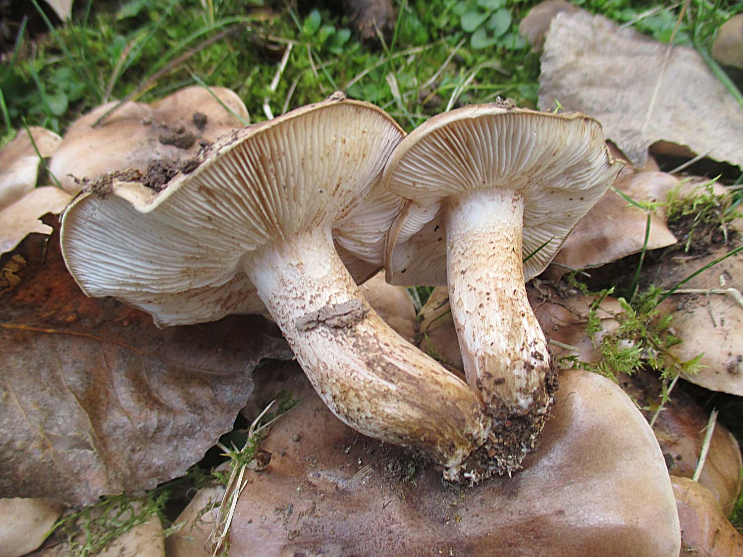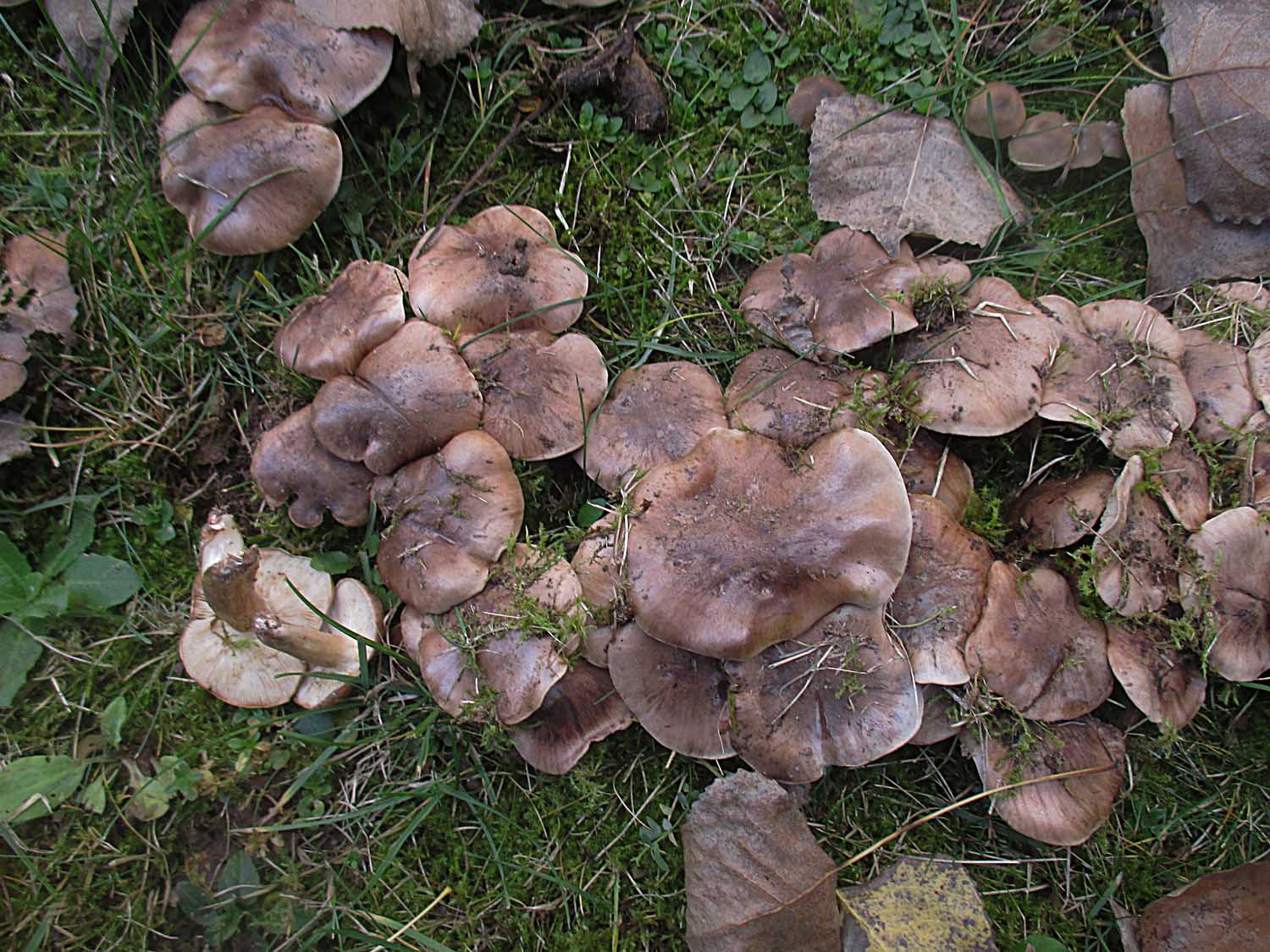 Im Wäldchen standen Fuchsige Trichterlinge (Paralepista flaccida) und Kahle Kremplinge (Paxillus involutus) herum.