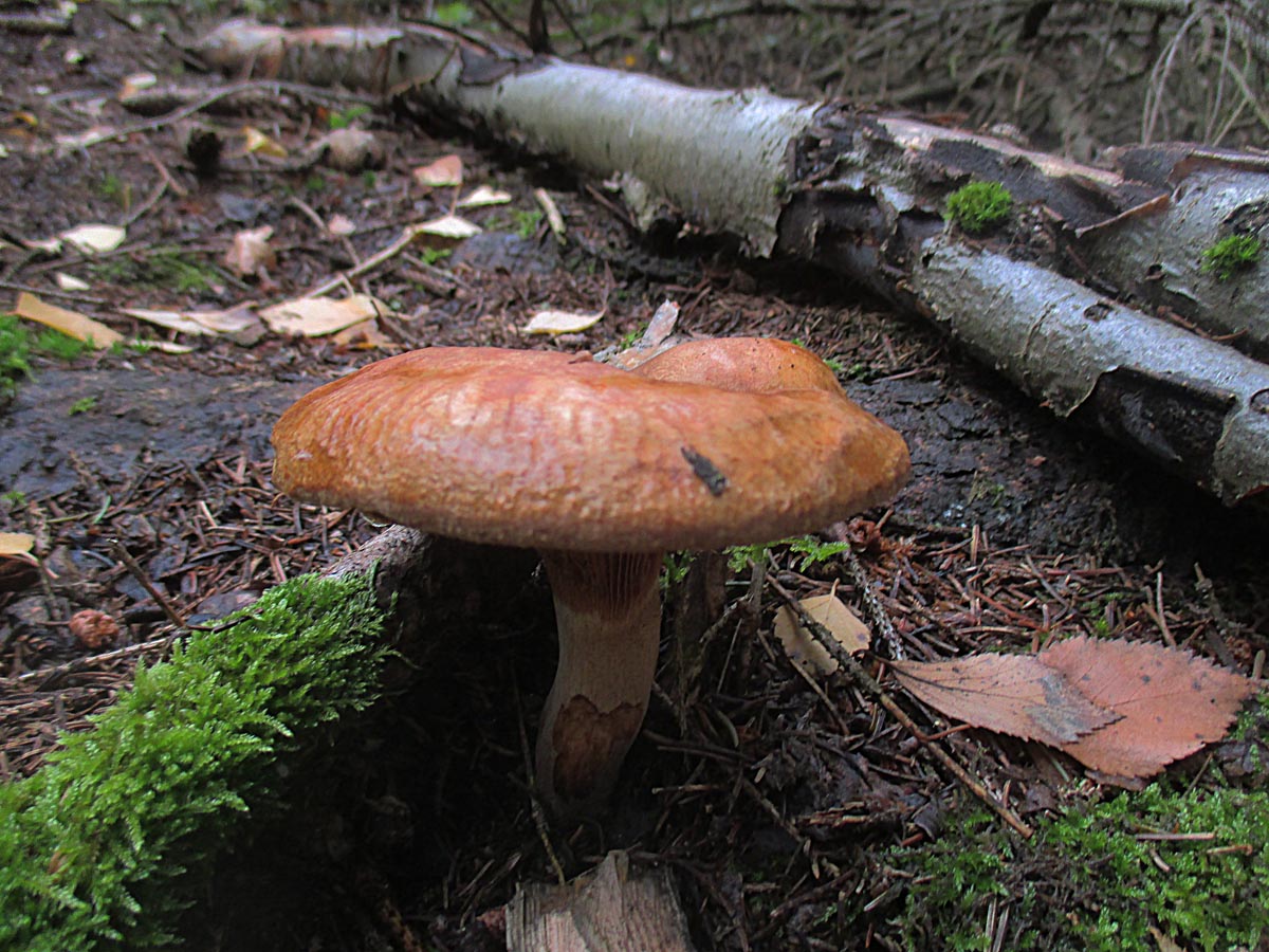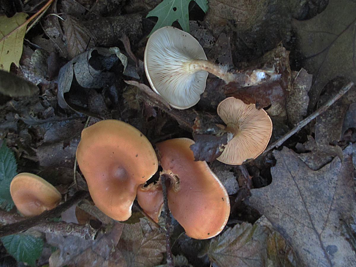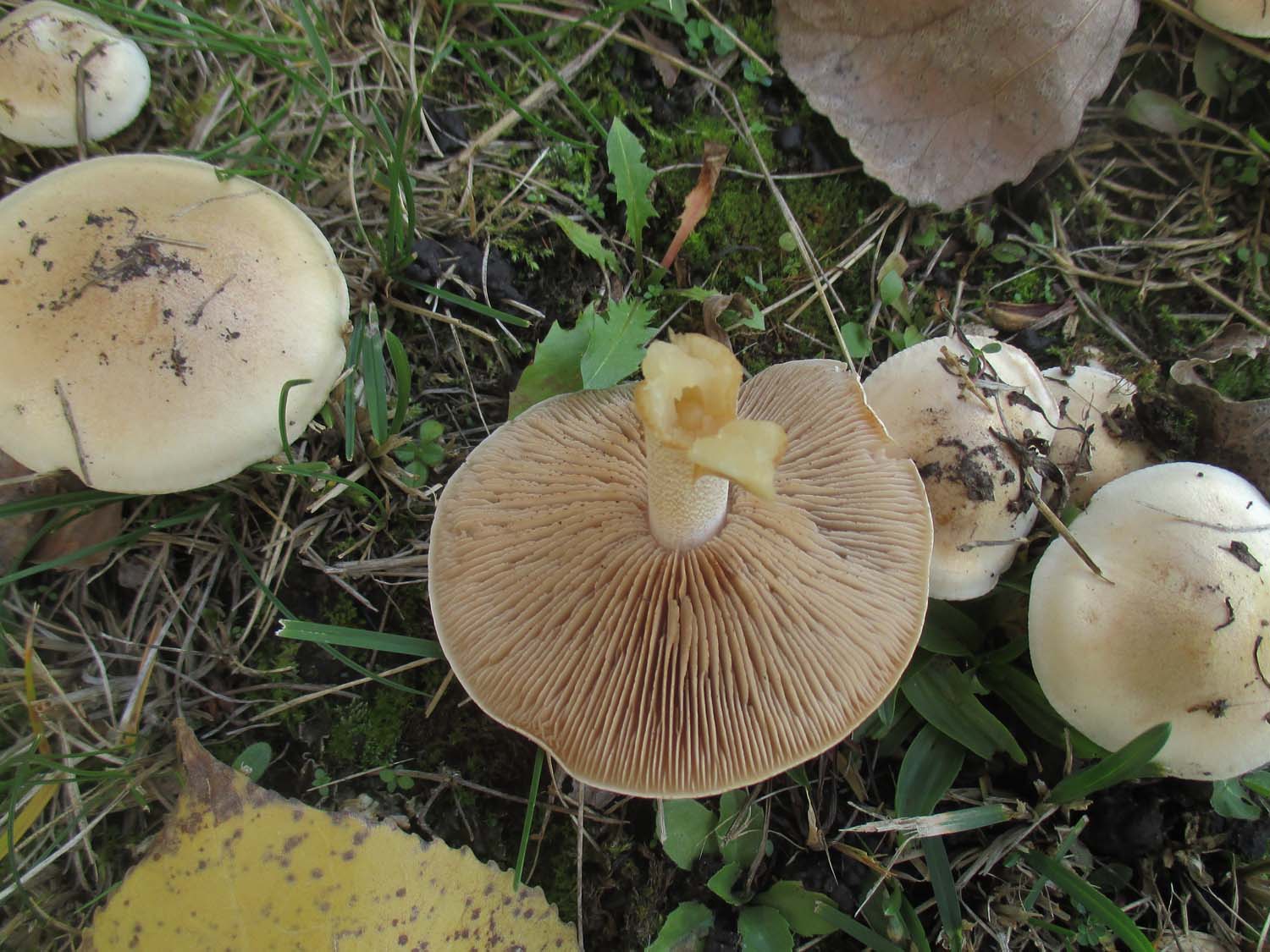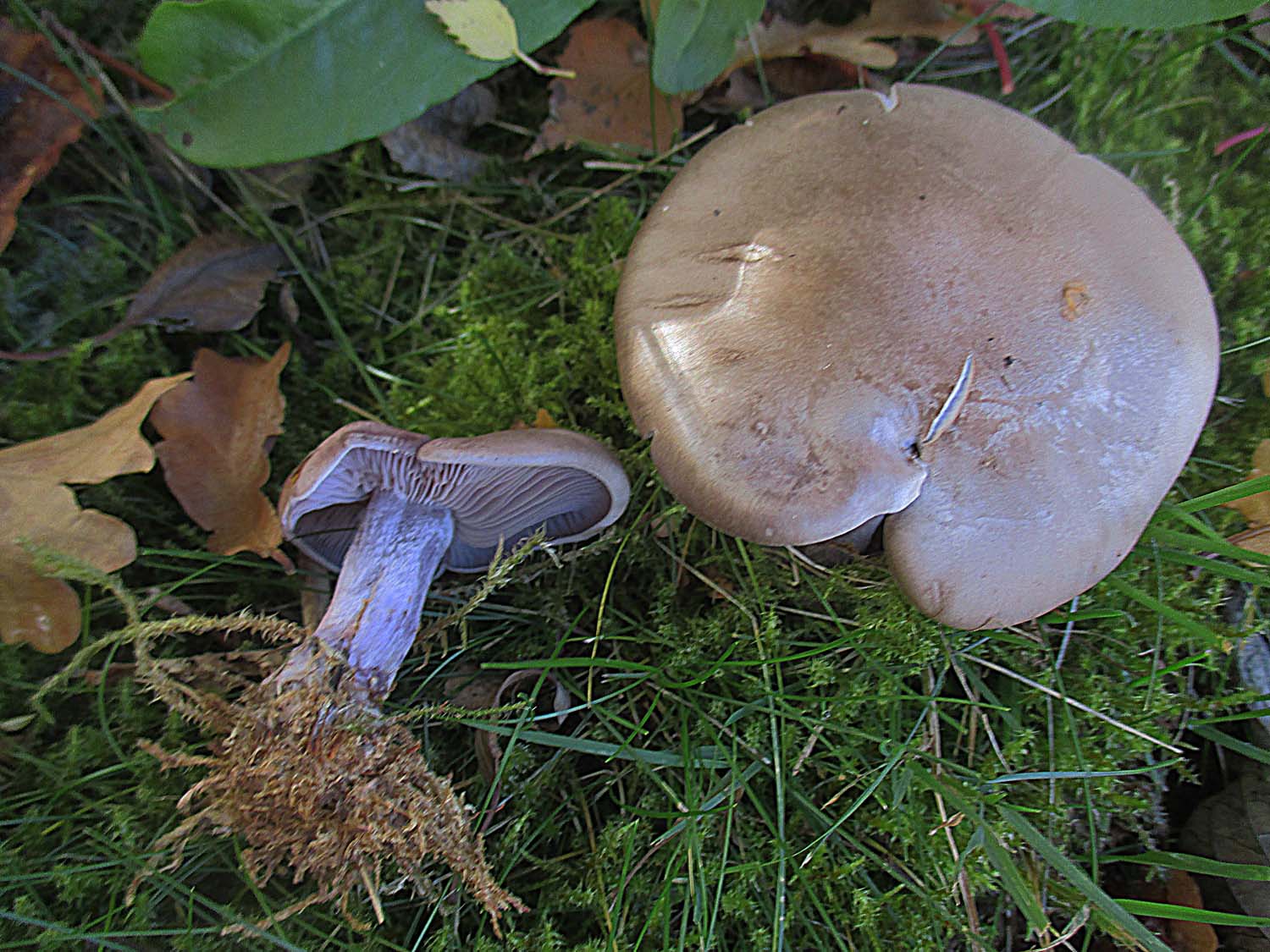Im Wäldchen standen Fuchsige Trichterlinge (Paralepista flaccida) und Kahle Kremplinge (Paxillus involutus) herum.