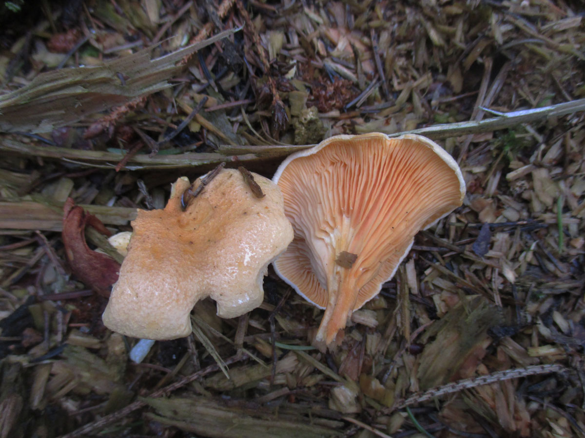 Tonblasse Fälblinge (Hebeloma crustuliniforme) und Falsche Pfifferlinge (Hygrophoropsis aurantiaca) ließen sich auch blicken.