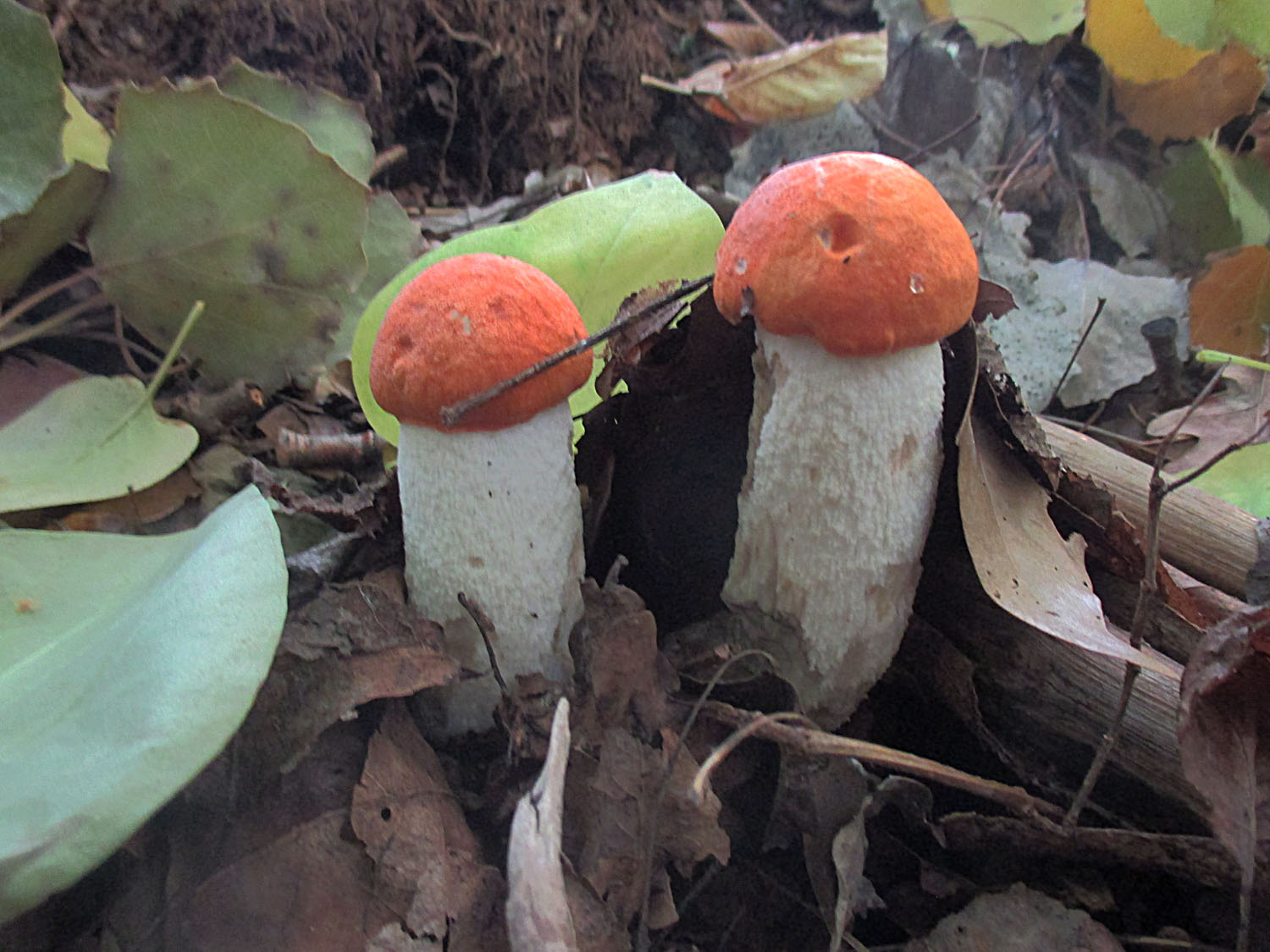Ebenso Espenrotkappen (Leccinum leucopodium), Birkenpilze (Leccinum scabrum) und Violette Rötelritterlinge (Lepista nuda).